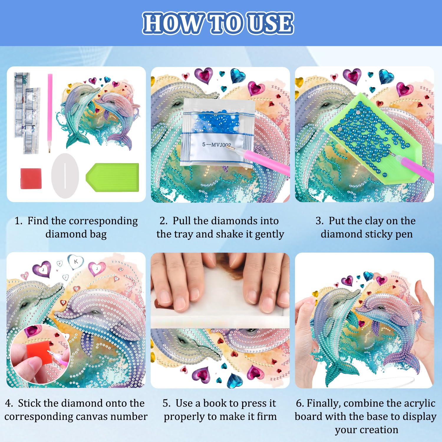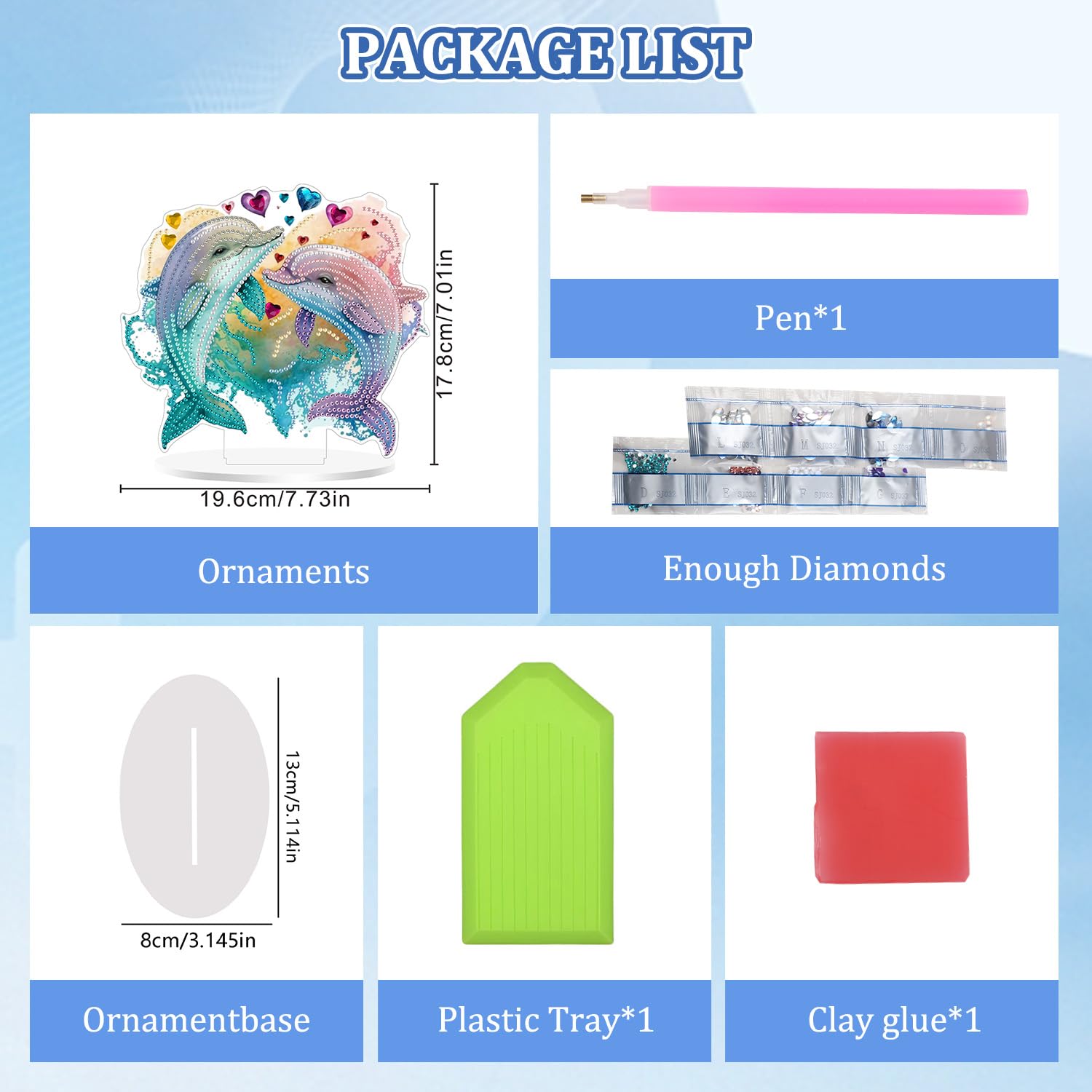 Bowetile Dolphin Diamond Art Desktop Ornaments Kits for Adults Beginners, 5D Special Shape Diamond Art Painting Animals Tabletop Ornaments, Crystal Gem Art Painting for Home Table Decor Crafts Gift
