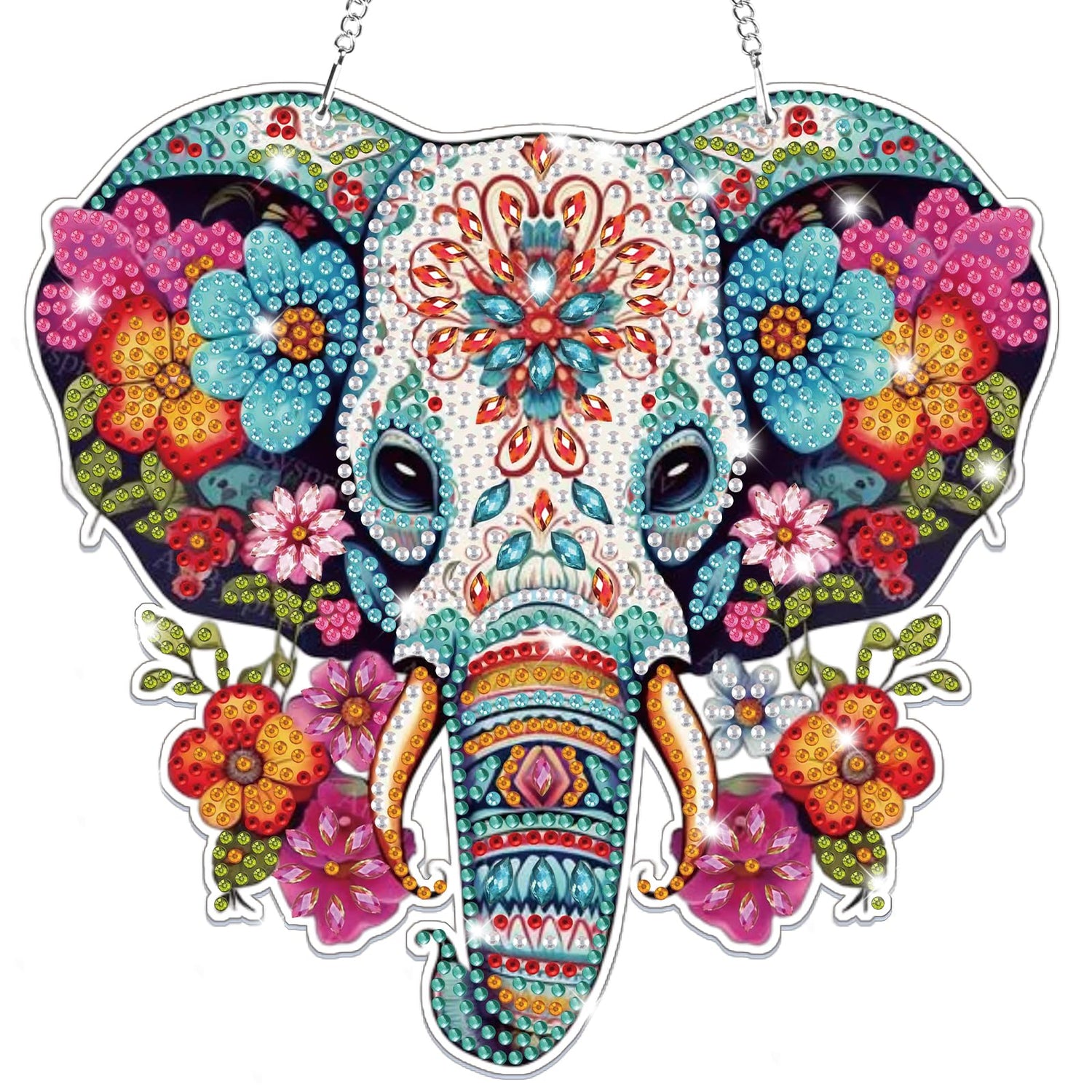 Bowetile Elephant Diamond Art Hanging Kits for Adults Kids, 5D Special Shape Diamond Painting Flowers Pendant Kits, Animal Gem Art Suncatchers Painting Ornament for Home Garden Wall Decor