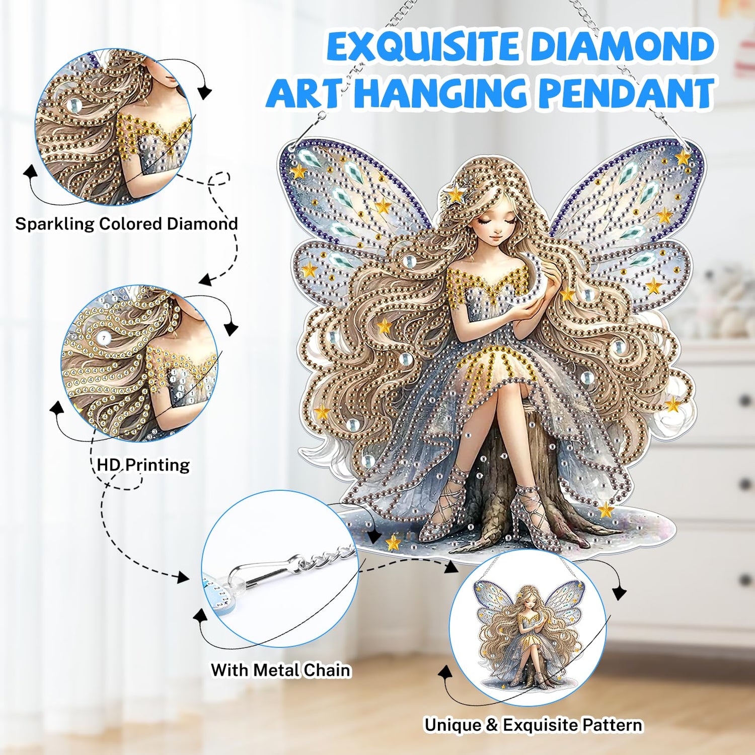 Bowetile Fairy Diamond Art Hanging Kits for Adults Kids, 5D Special Shape Diamond Painting Pendant Kits, Animal Gem Art Suncatchers Painting Ornament for Home Garden Wall Decor