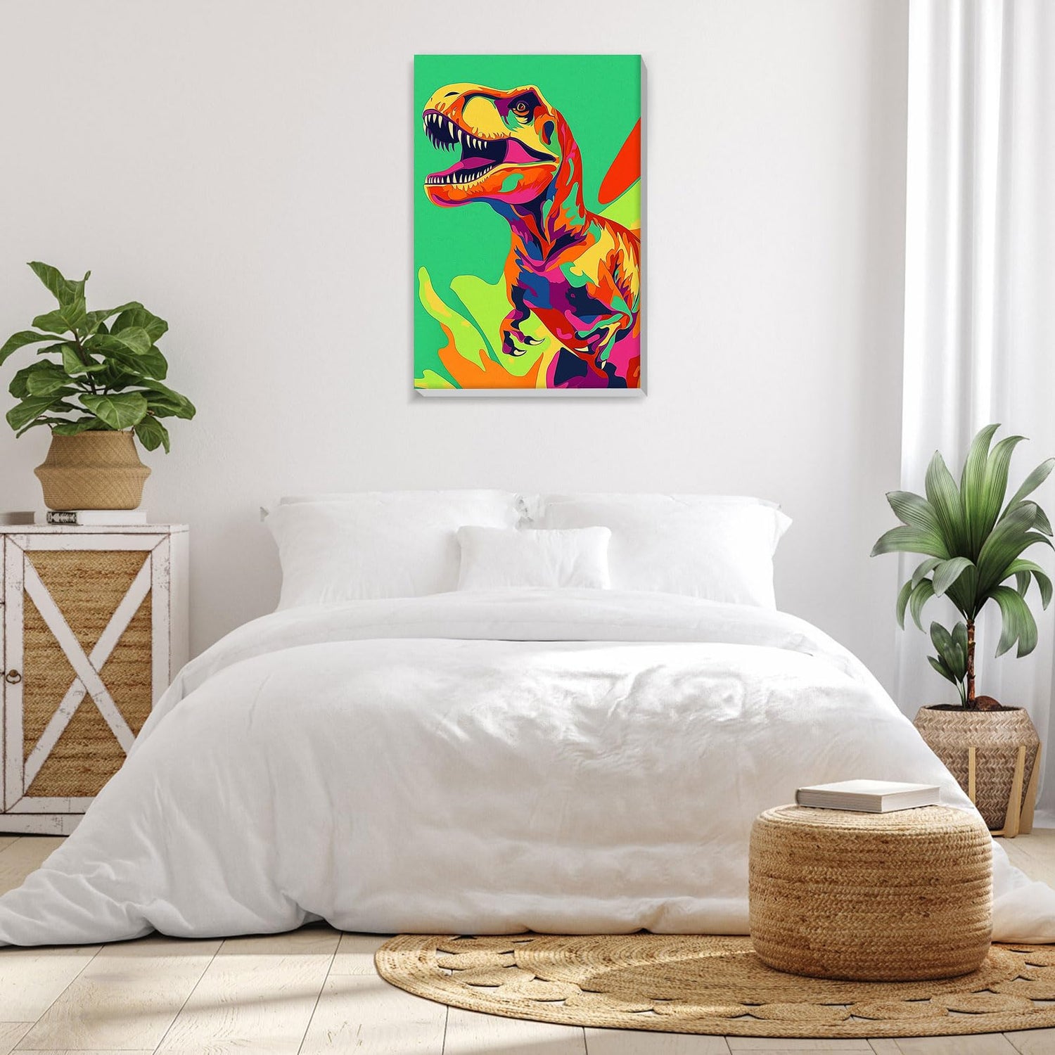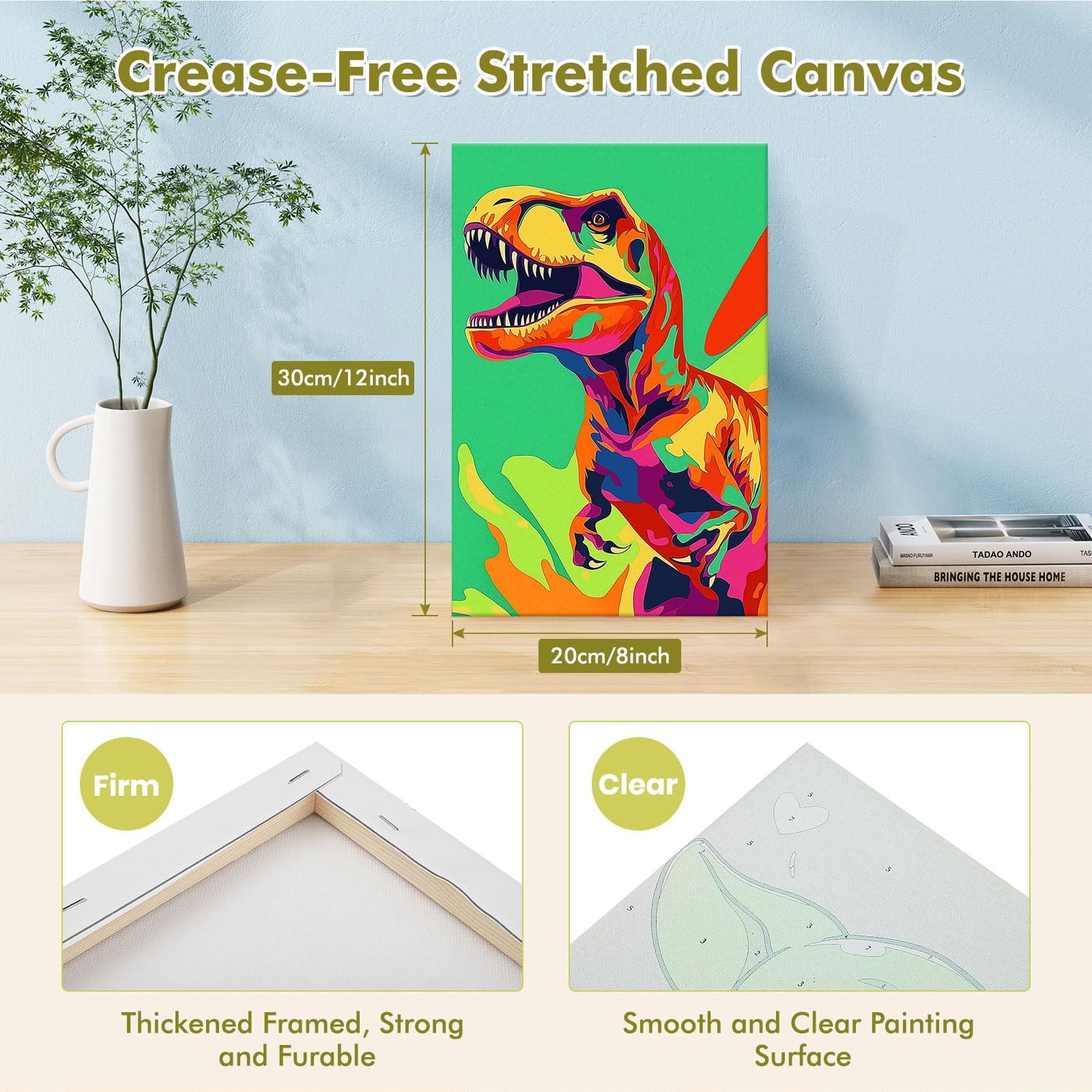 Bowetile Framed Cartoon Paint by Numbers for Kids Beginners, Dinosaur Paint by Numbers for Kids Ages 8-12, Kids Paint by Number Kits on Canvas, DIY Acrylic Number Painting for Home Decor, 8x12in