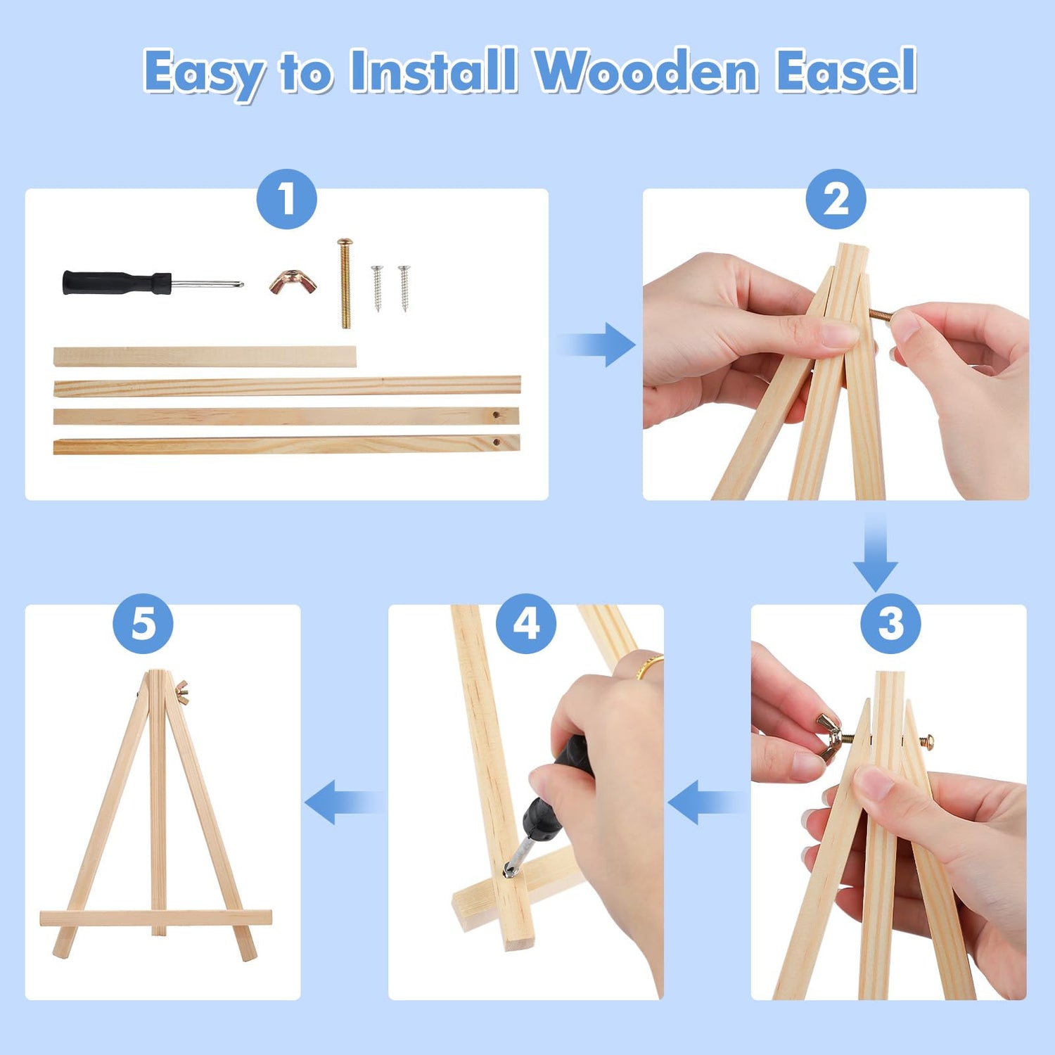 - What You Will Get: Each paint by number kit includes a wooden frame canvas, a wooden easel and 3 brushes with different tips. Hang their masterpiece with ease using the included Hooks or Self Adhesive Dots for stunning wall decor