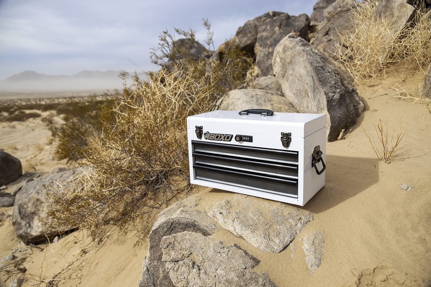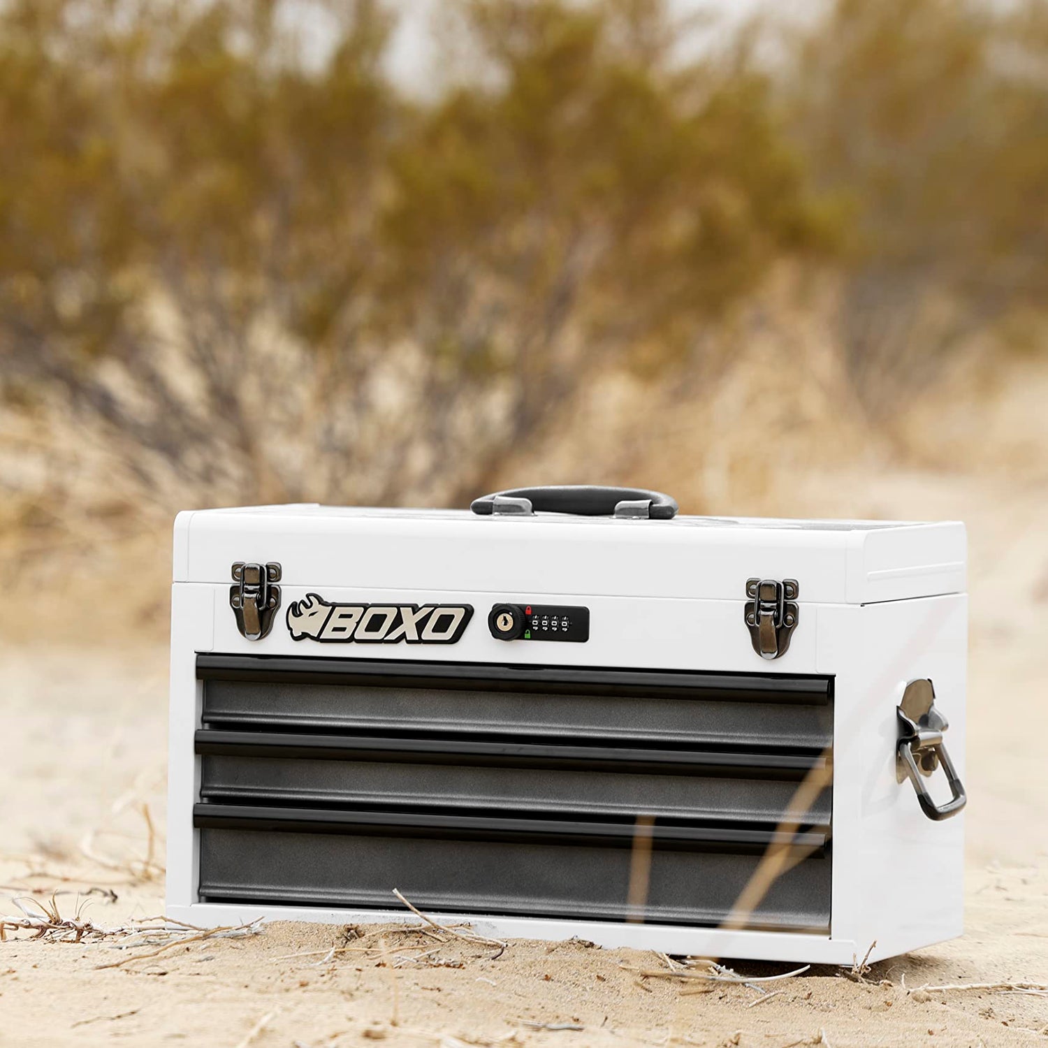 Boxo USA Hand Carry Tool Box 3-Drawer Heavy Duty Steel Toolbox with Lock System (White)
