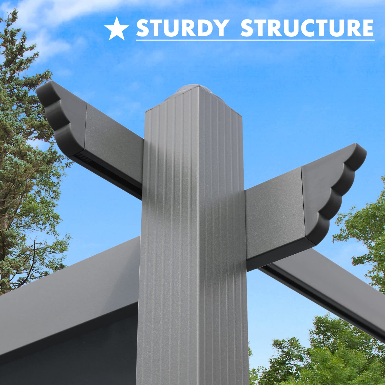 - Sturdy Frame - BPS patio pergola is made of all aluminum frame with protective graphic layer. Equipped with matching stainless steel screws + 8 stainless steel expansion screws + 9 stainless steel wood screws. Enhances its stability, wind resistance and durability.