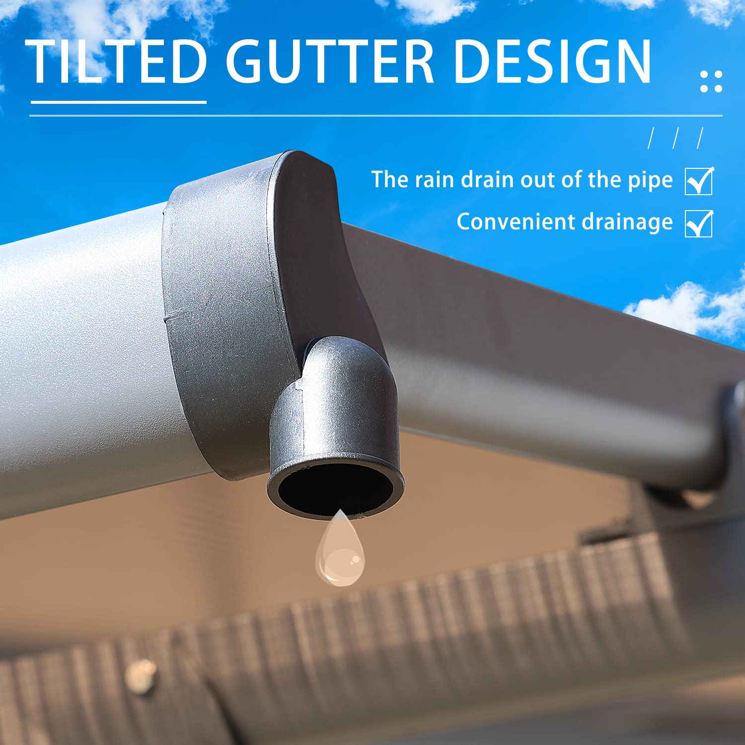 - Assembled Dimensions: 10' D x 16.5' W x 8.5/10.1' H. Our products form a large shade for the patio. Allowing you to enjoy various activities such as gatherings, breaks, parties and more under our outdoor pergola gazebo.