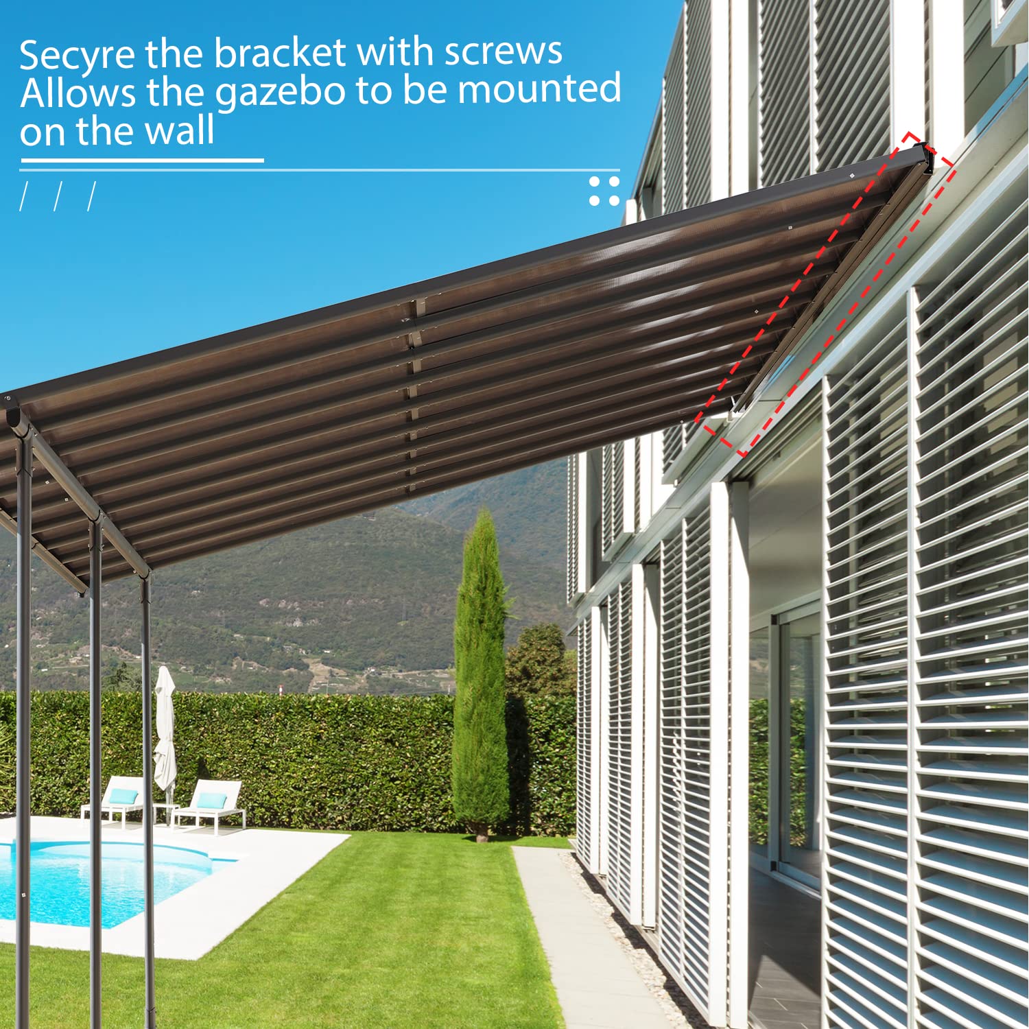 BPS 16.5' x 10' Wall Mount Gazebo Outdoor Pergola Polycarbonate Gazebo with Water-Resistant and UV-Fighting Panels Canopy