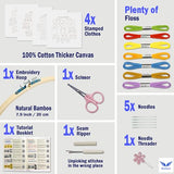- 【Has All That You Need】Our embroidery kit includes everything you need to kickstart your embroidery journey. From high-quality threads to premium fabric, needles, scissor, threader, seam ripper, and embroidery hoops