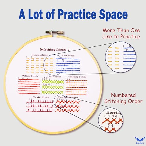 Bradove 4 Set Embroidery Stitches Practice Kit, Embroidery Kit for Beginners with Embroidery Patterns, Beginner Embroidery Kit, Embroidery Kits for