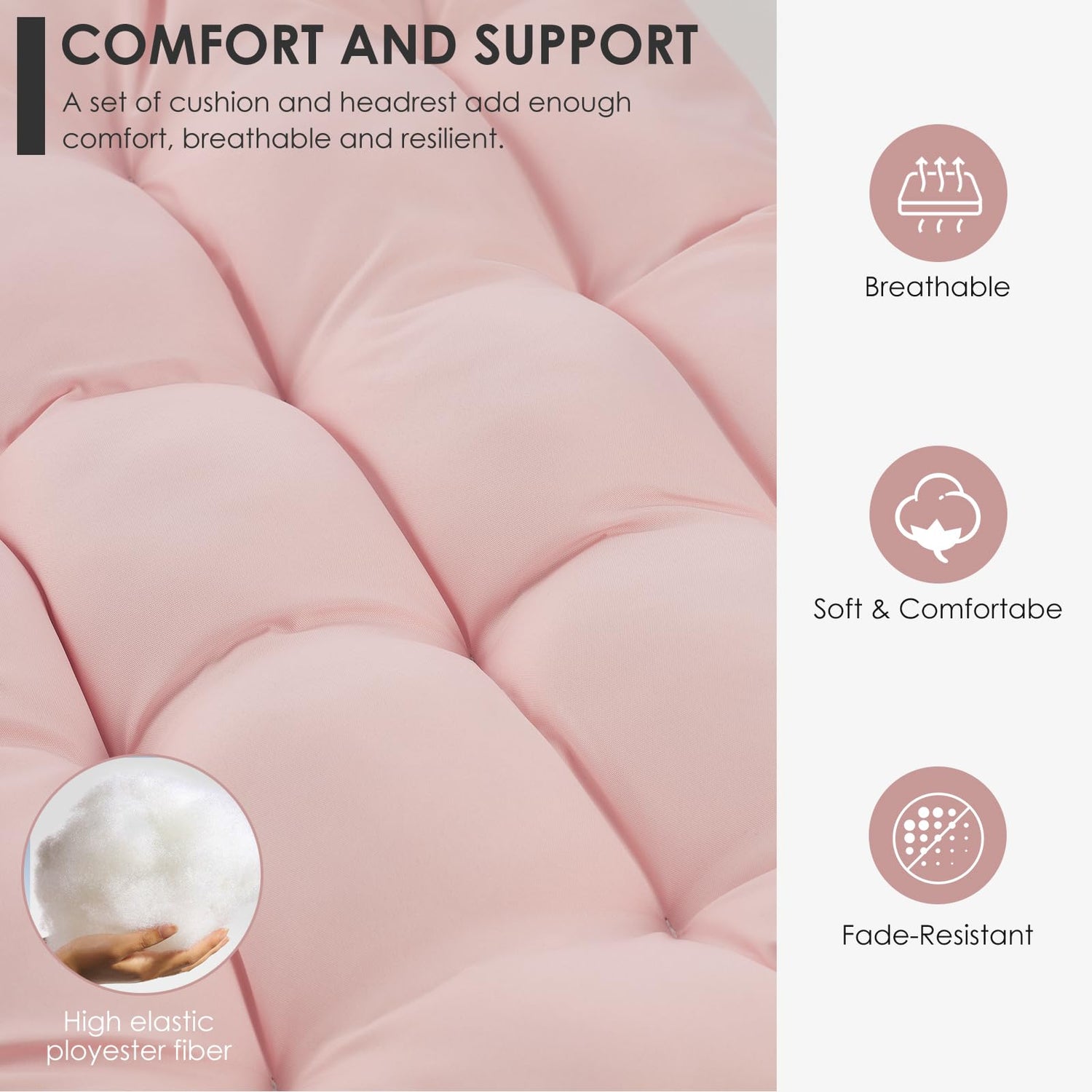 - Quality Assurance, Weather-resistant: The stand and the chain are made of powder-coated+Electrophoretic paint steel, the rope of the chair’s back is made of polyester and PVC, the firmness of this kind of material is 10 times tough than the firmness of cotton, this is why the chair can hold up to 350 lbs of weight, very sturdy and safe! The frame of the egg chair is made of aluminum steel, while most of others are made of pure iron, the aluminum steel makes the chair fashionable, and durable.