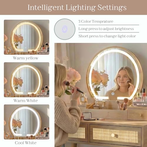 - Adjustable Dimmable Vanity Mirror: Features a 16.7" round LED mirror with 3 color temperatures (Warm/Cool/White). Long press to dim, short press to change modes, offering flawless lighting for makeup, grooming, or selfies