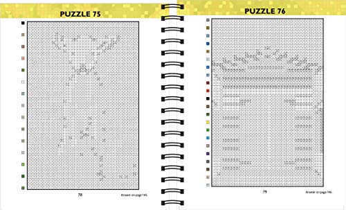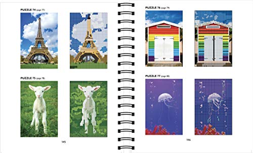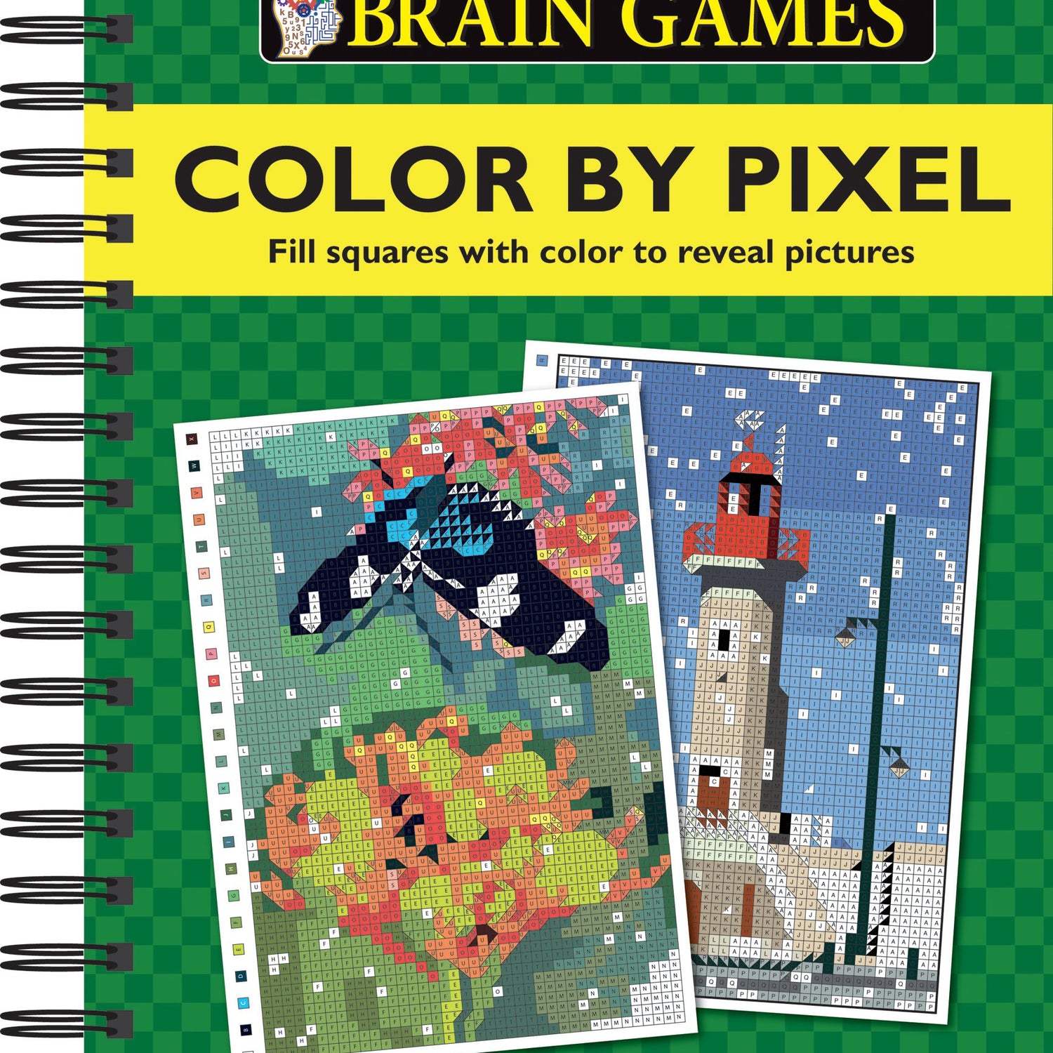 Details: Exercise your brain and your eyes! This book challenges you to fill squares with given colors to reveal pictures. Contains 100 pictures to color by pixel. For each picture, you will see a grid on the page, along with a color key. Use the color key to fill in the grid squares and form a beautiful mosaic picture! Each color appears on the page and is represented by a letter to fill in on the grid. Includes a variety of images. Spiral bound, 160 pages.