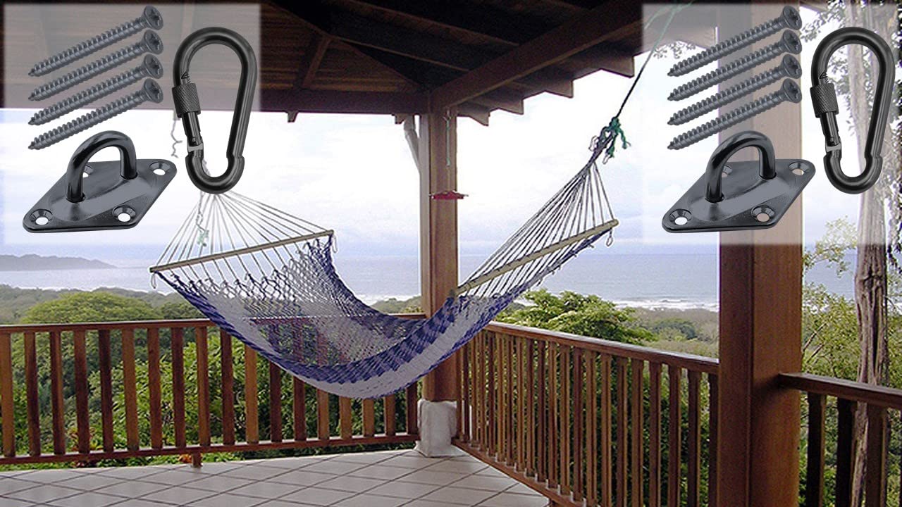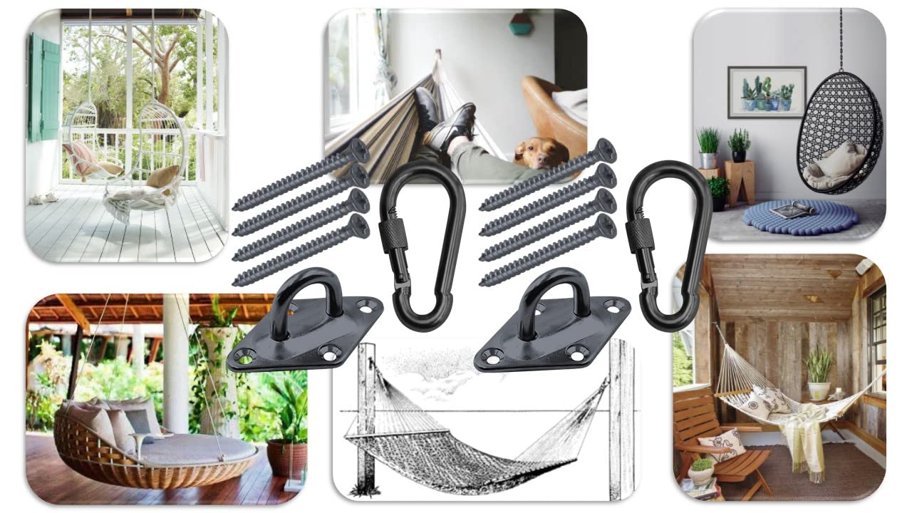 - Branded Boards Heavy Duty Black or Silver 1000lb load Hammock Hanging Kits with Ultra Safe Locking Carabiner Snap Hooks. Great for Hammock Stands, Swing Chairs, Suspension Ceiling Hooks, Yoga & Brazilian Ceiling Swings & Hammocks, Porch Swings, Punching Bags, Hanging Plant Pots, Indoor Outdoor use.