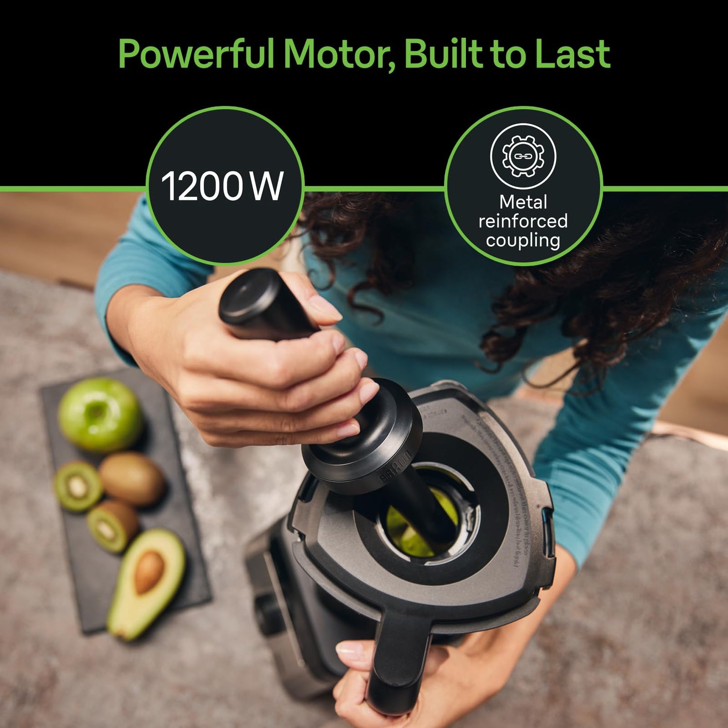 - 1200 watts of premium power that precisely blends tough ingredients to the smoothest of textures.