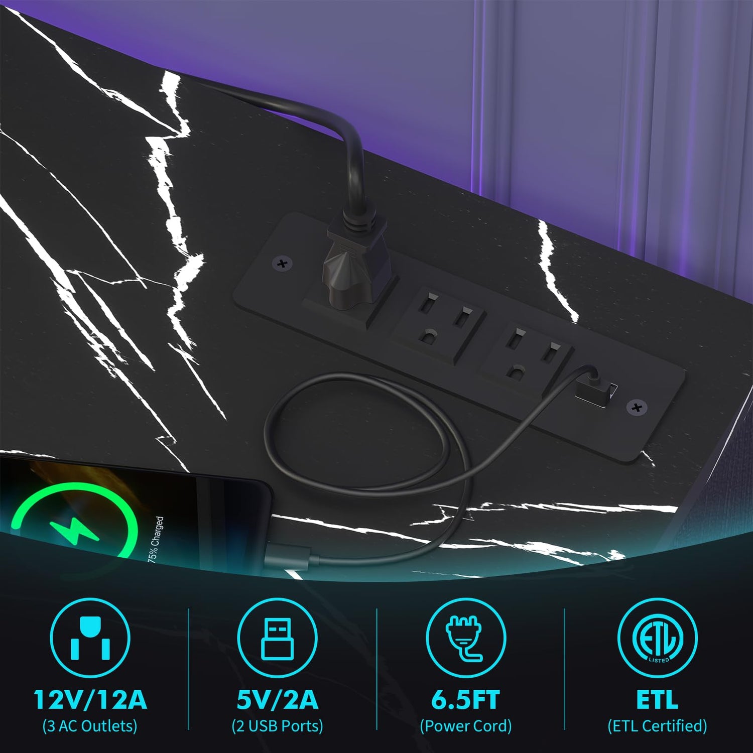 • Marble Top with Outlets: Made of high quality particle board, the TV cabinet features a stylish and sturdy top made of wood with a matte marble finish. It is easy to wipe clean and resistant to scratches and stains. Also, 3 sockets and 2 USB ports built into the top, so you can plug in and charge your devices with ease.