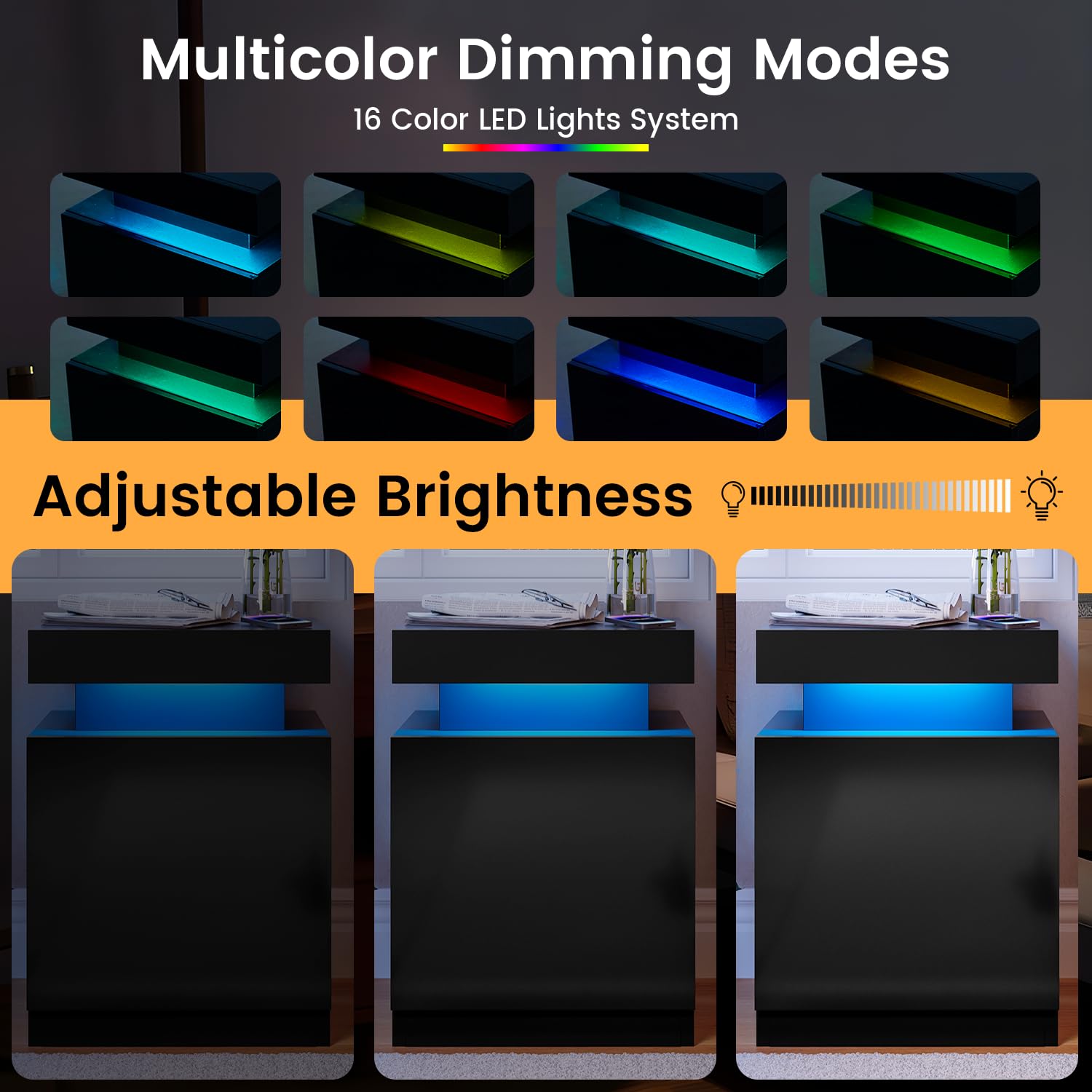 - Adjustable Light: These LED nightstands offer adjustable brightness levels, allowing you to customize the lighting to suit your preferences or activities. Whether you need a soft ambient glow or brighter light for reading, you can easily adjust the brightness with the remote control.