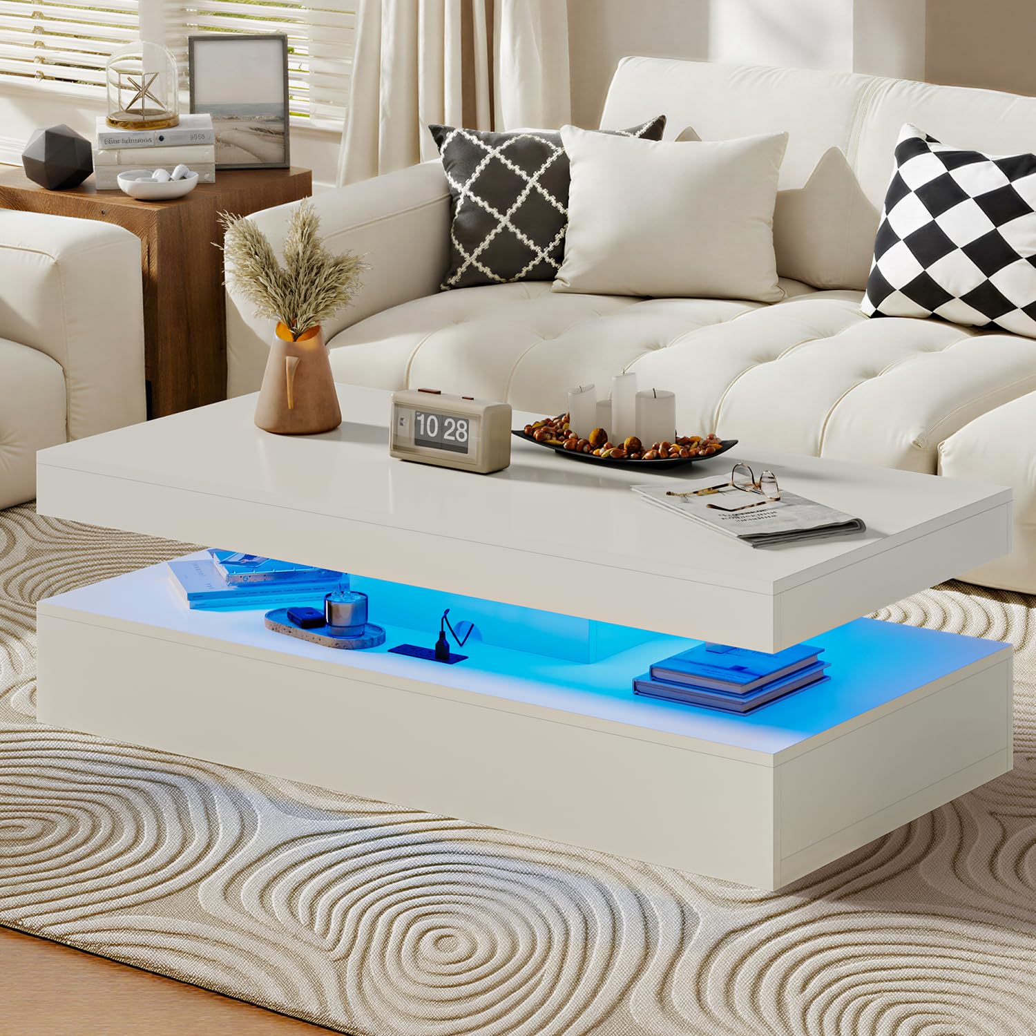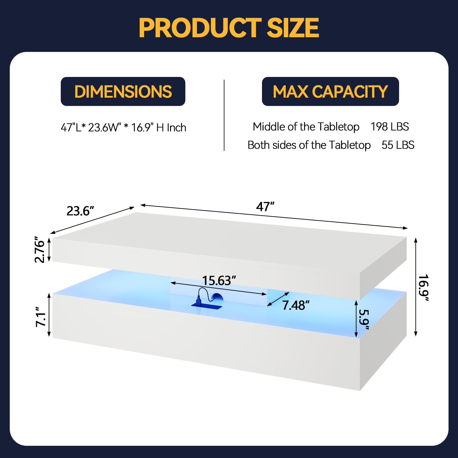 - High-Gloss Effect: Our led coffee table features a premium high-gloss surface, making it look elegant and advanced. Crafted from sturdy material, this product can endure long time use. Its smooth finish is not only stylish but also easy to clean