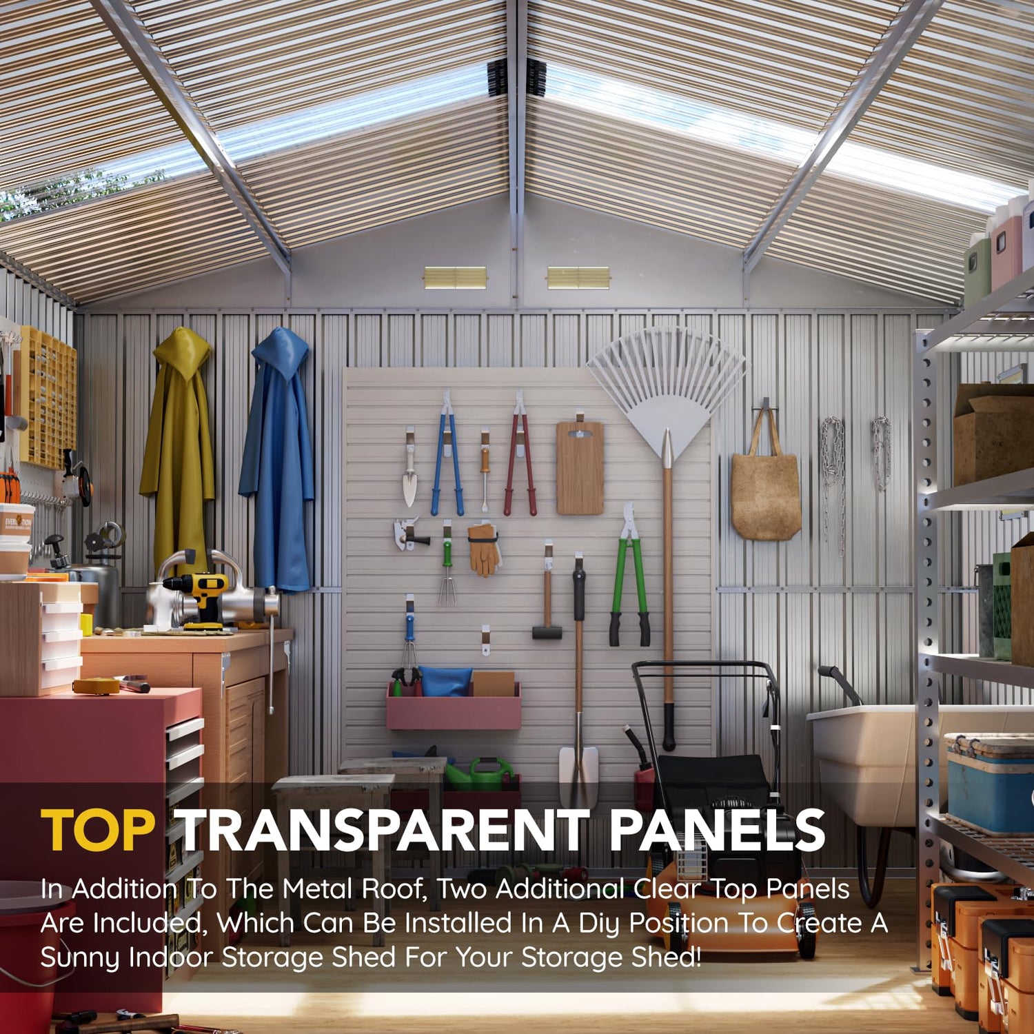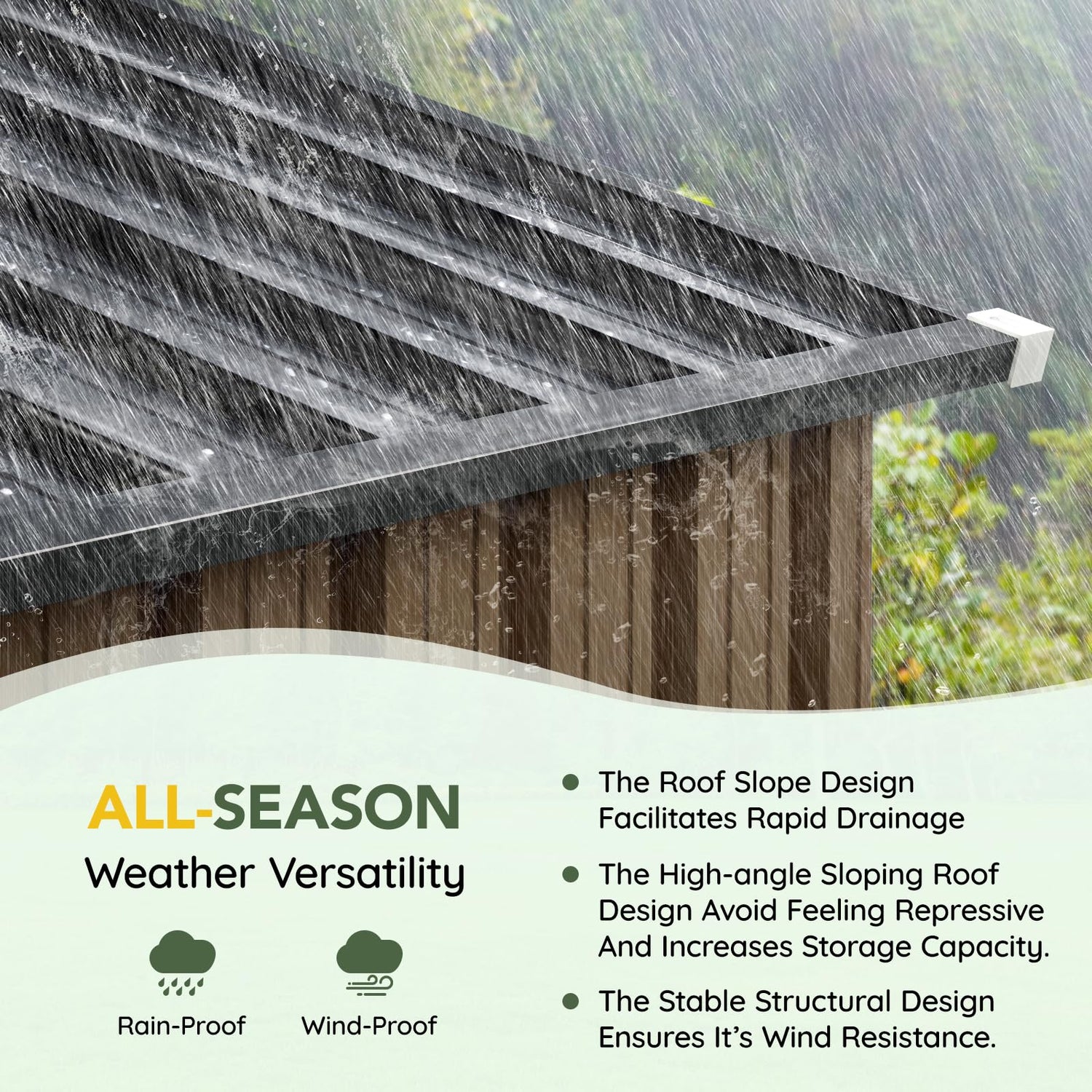 - Durable Construction: Crafted from galvanized steel, this shed is rust-resistant and weatherproof, ensuring long-lasting durability even in tough outdoor conditions.