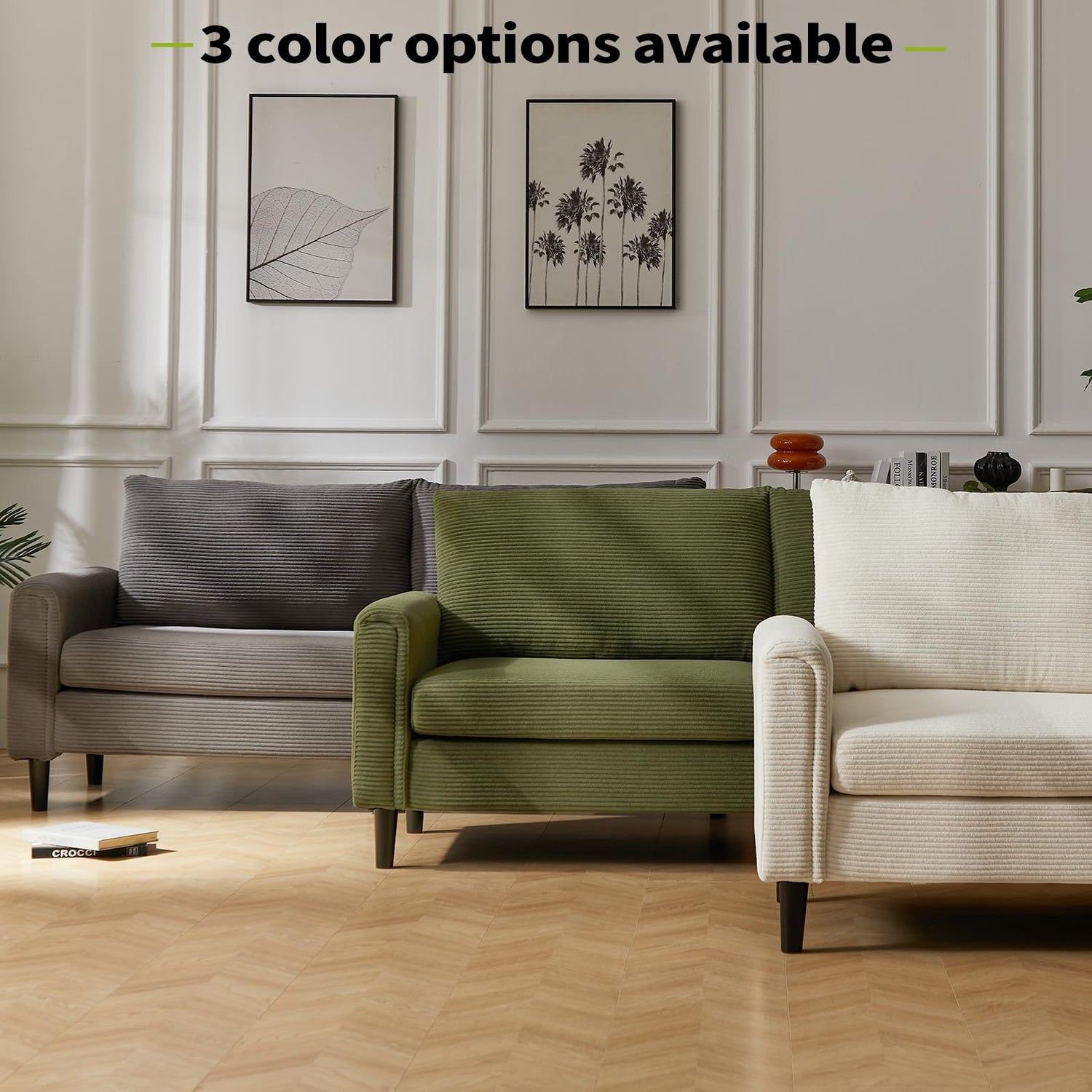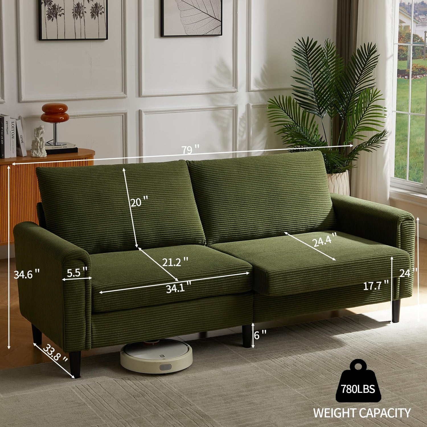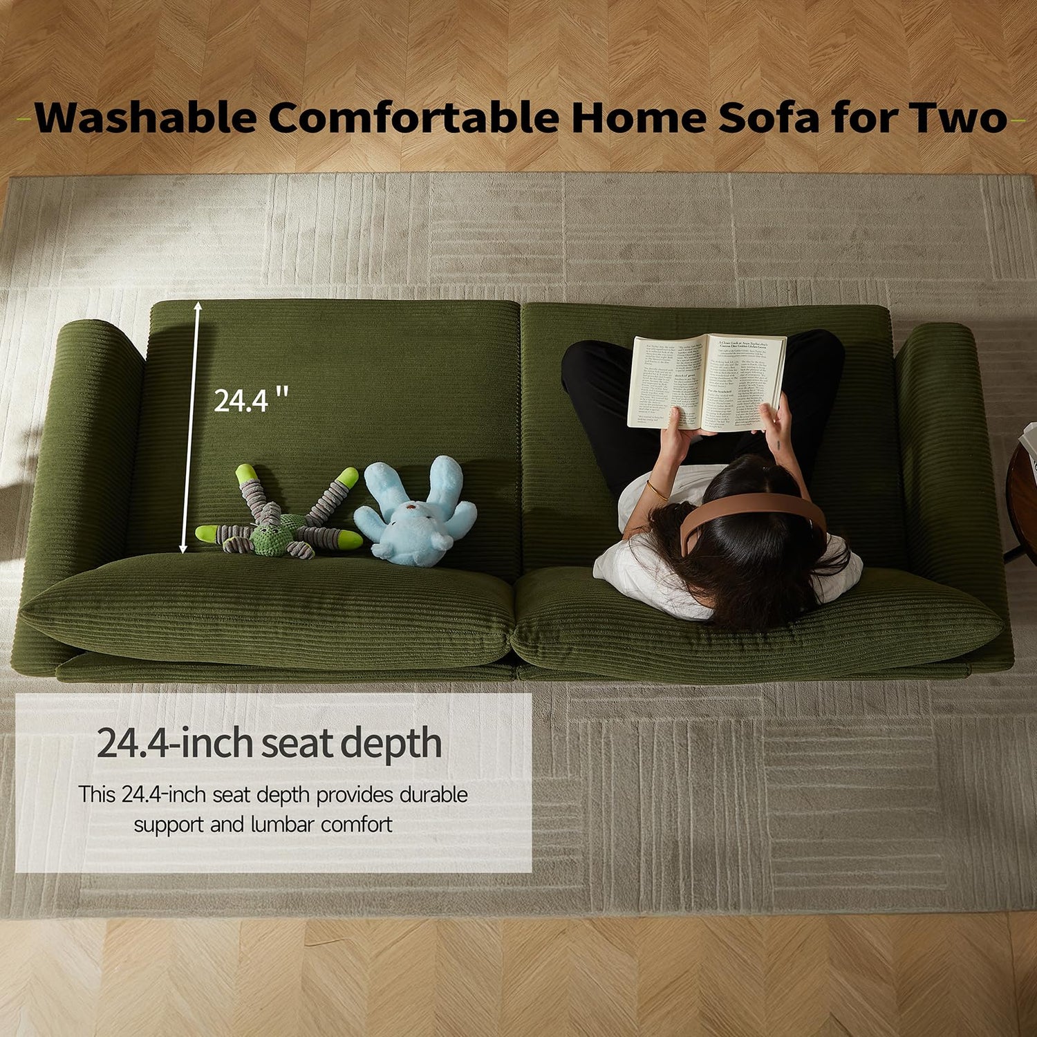 - Luxurious Corduroy Fabric: Upholstered in high-quality corduroy fabric that’s soft, breathable, wear-resistant, and easy to clean. The textured surface adds visual depth and tactile comfort, making this green couch a stylish centerpiece in any modern living room