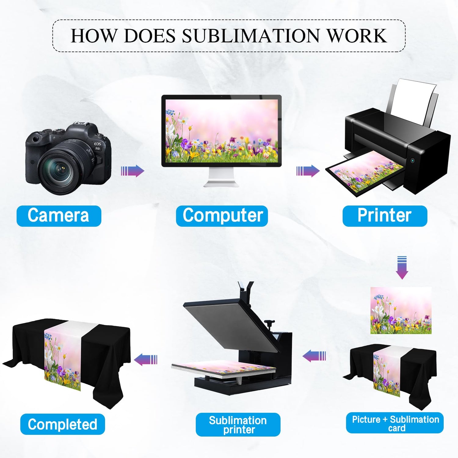 - Sublimation Required Items: a thermal sublimation printer, thermal sublimation ink, and hot press are required to sublimate your design on this product, optional items you may need to include: heat resistant tape, roller, steamer, or iron, please note that none of the above items are included in the package; If you intend to leave the white table runner blank, no additional items are needed