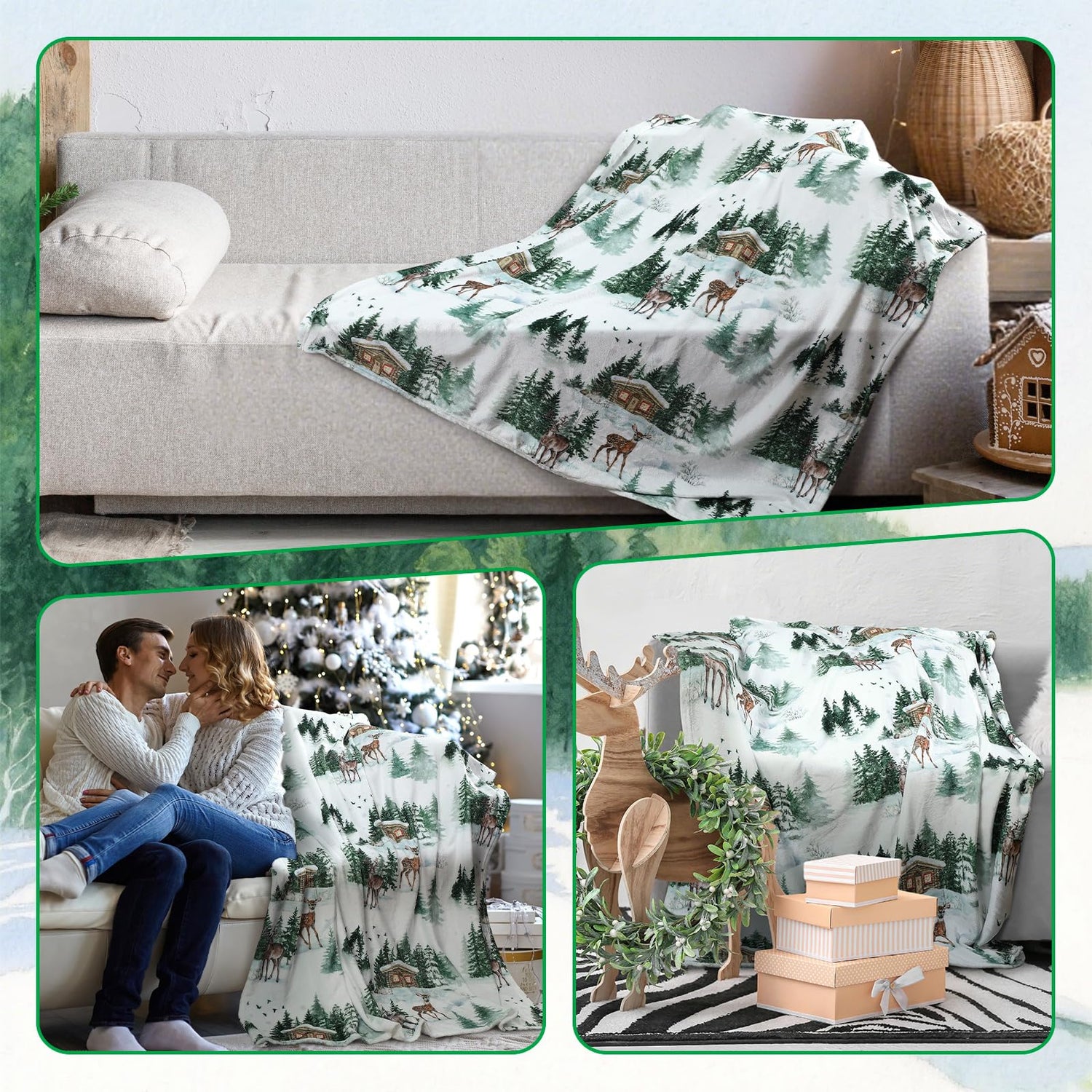 - Flannel Soft Warm: made of brushed flannel with a Christmas print elk tree on one side and solid white on the reverse; Soft, fade-resistant, and generously sized at 50" x 60" (126 x 152 cm), ideal for snuggling or easy storage