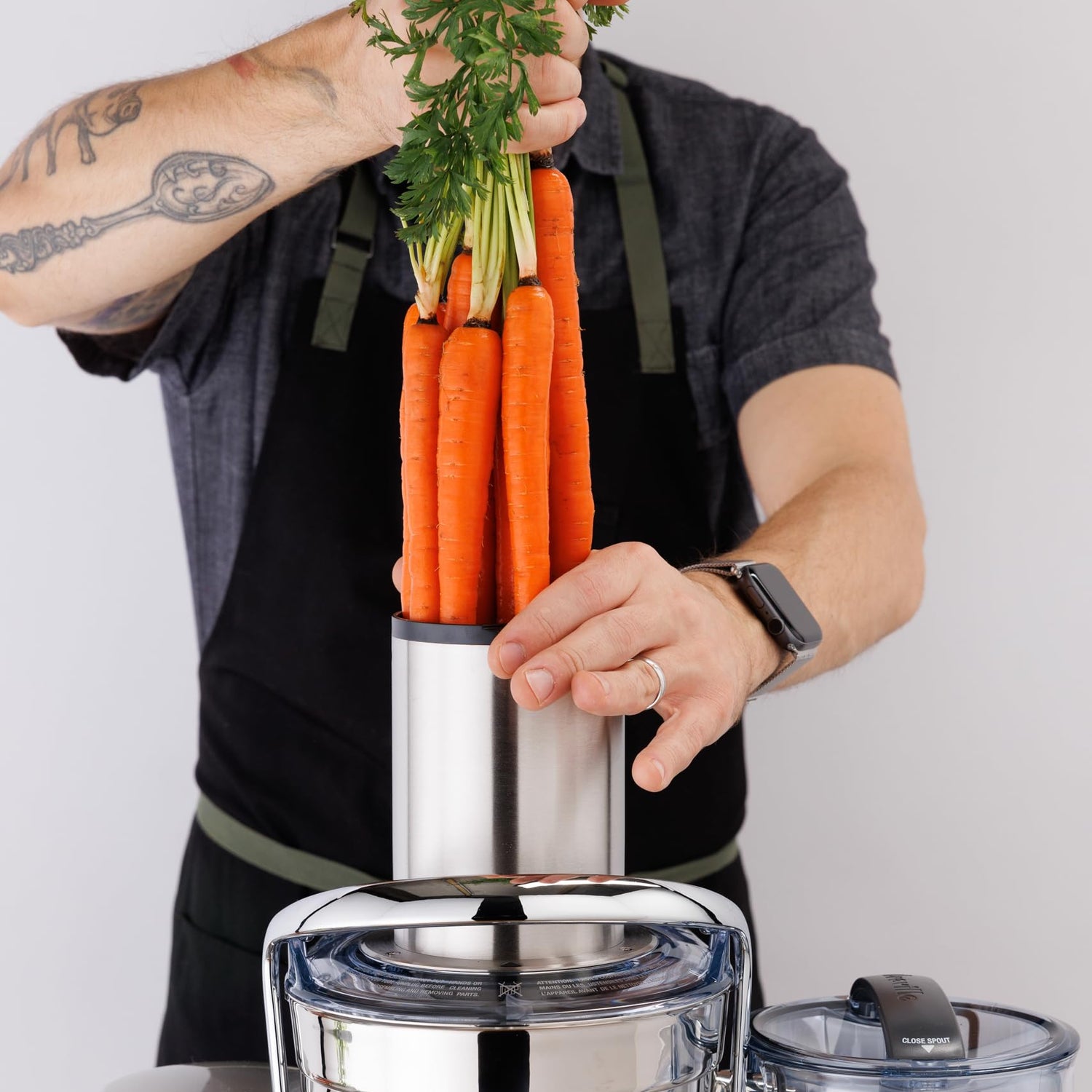 - SHORT PREP TIME: The Breville Juice Fountain Cold XL Pro's unique 3.5 inch extra wide chute feed allows you to juice whole fruits and vegetables without pre-cutting
