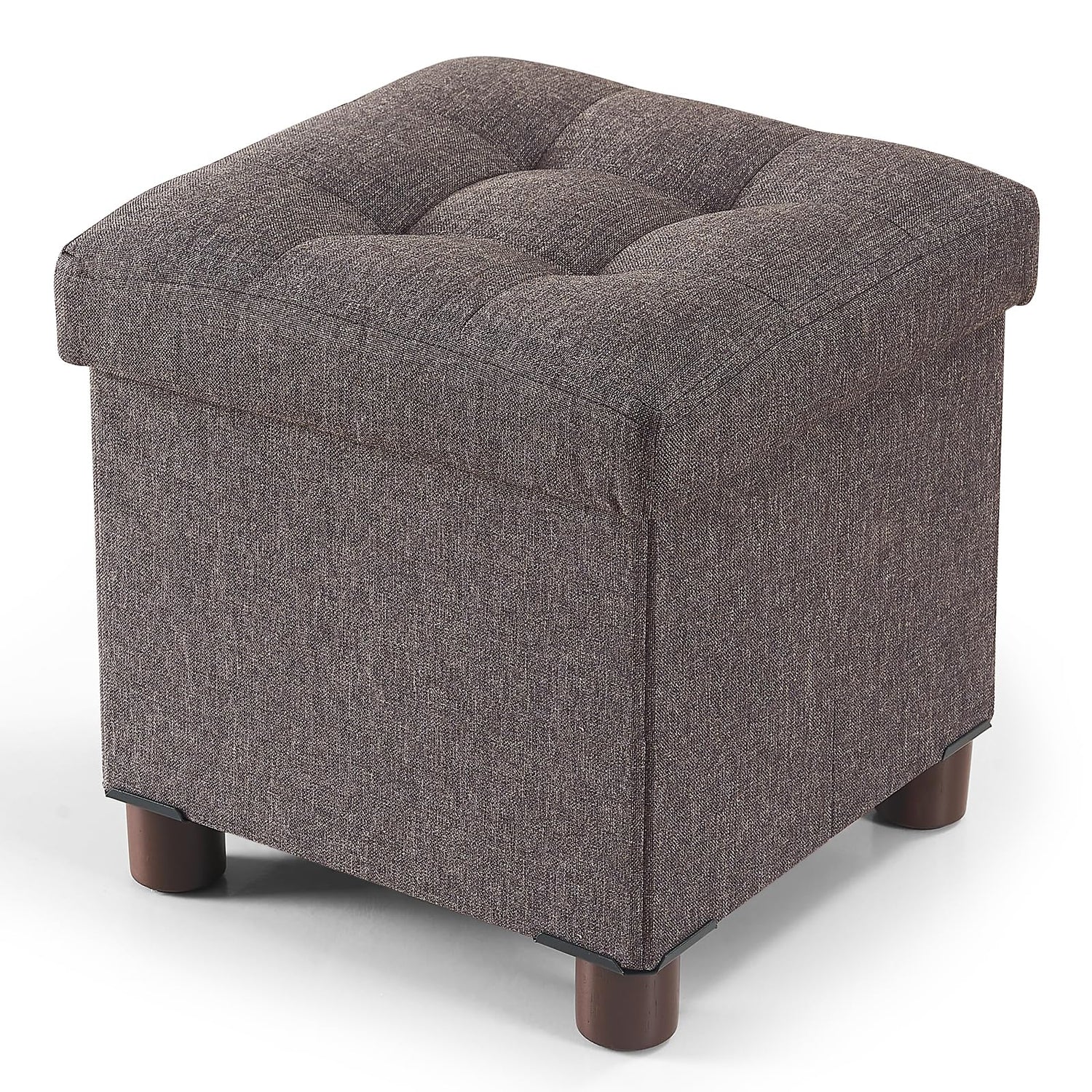 BRIAN & DANY Small Storage Ottoman Cube, Folding Ottoman with Storage, Foot Stool Seat with Wood Legs, for Living Room and Bedroom, 12.6"x12.6"x12.8" - Brown