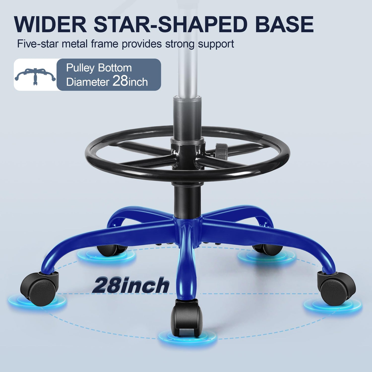 - Humanization Design: 15.8-inch cushion, more suitable for the comfortable size of most people; 28-inch five-star casters drafting chair, less prone to tipping over and more stable. The 2mm thick base supports up to 300 pounds