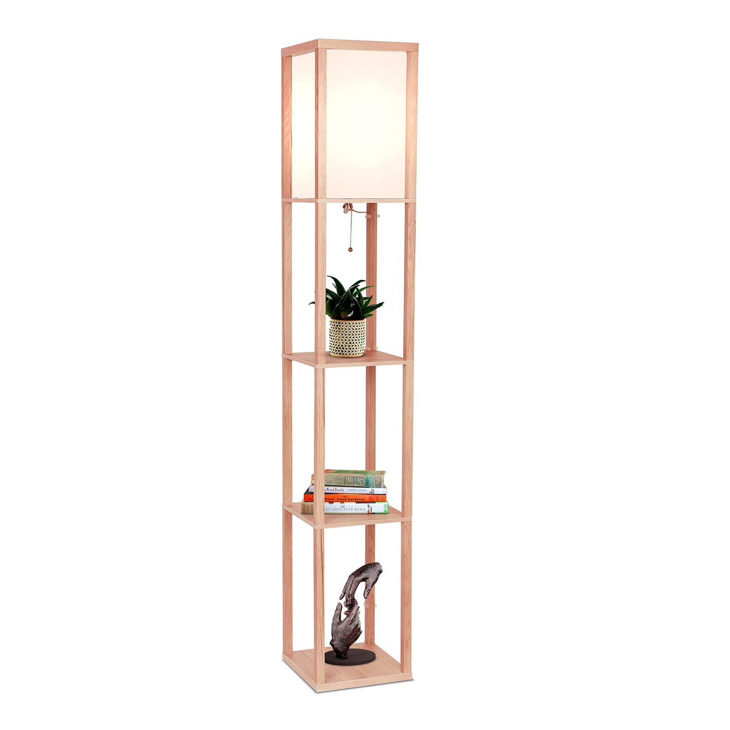 Brightech Maxwell - Modern Shelf Floor Lamp with Lamp Shade and LED Bulb - Corner Display Floor Lamps with Shelves for Living Room, Bedroom and Office - Natural Wood