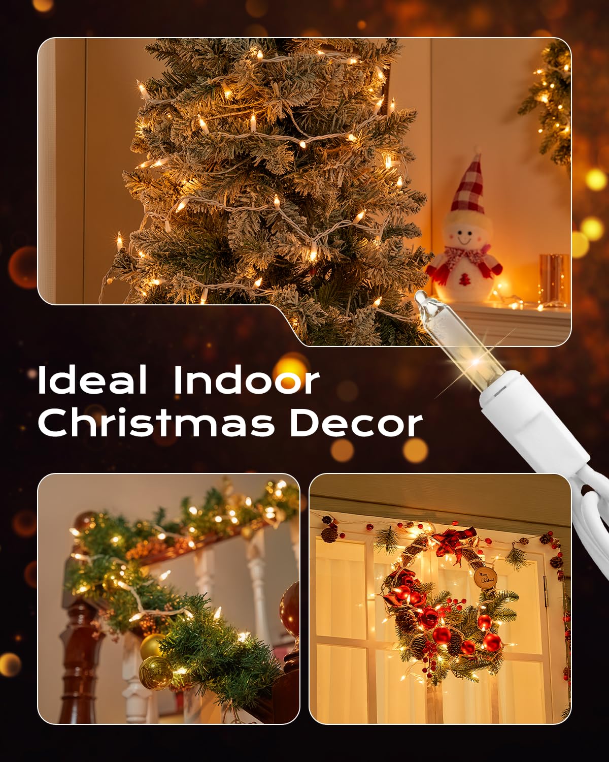 - 【Festive Mini Christmas Lights Set】This set includes 100 transparent incandescent mini-lights on 26.5 ft white wire, with bulbs spaced 3-inche apart and 18-inch lead wire. Perfect for holiday decorating, with the ability to connect up to 5 light strings end-to-end;