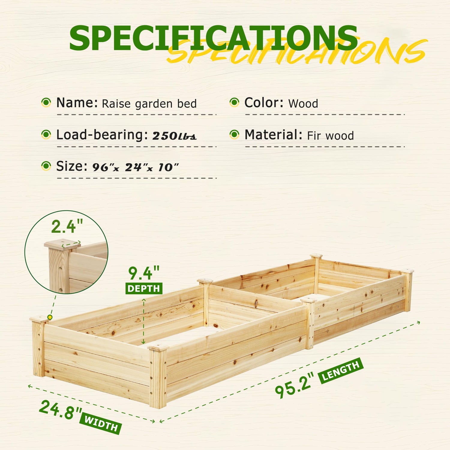 - 100% Natural Solid Fir Wood Garden Box - Use completely natural fir to this garden bed, no chemical additives added, which is very environmentally friendly and harmless to human body