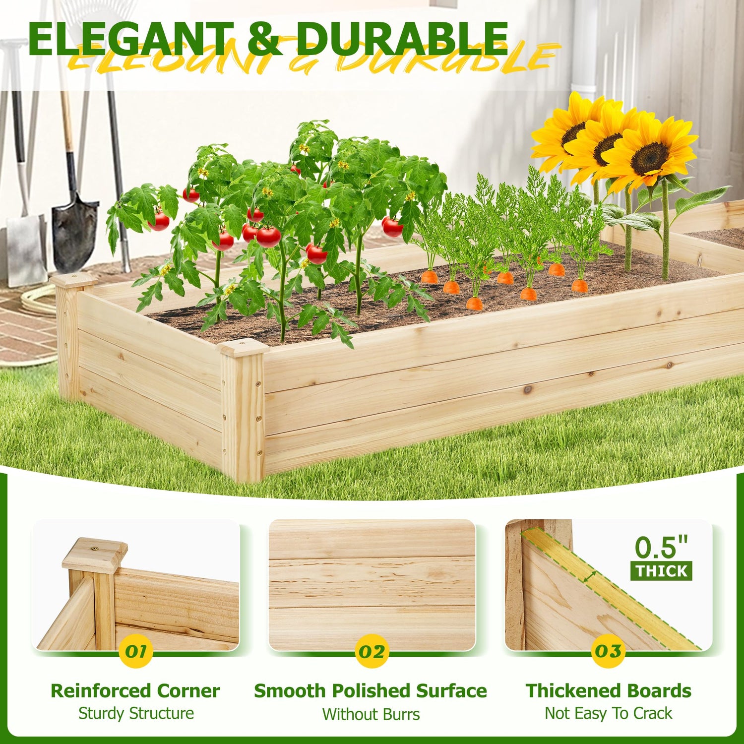 - Stable and Durable - This solid fir wood ensures the durability and solidness of the planter box, which is stable and durable enough to strongly support the weight from the planter raised garden bed itself, soil and plant, ideal for all years' use