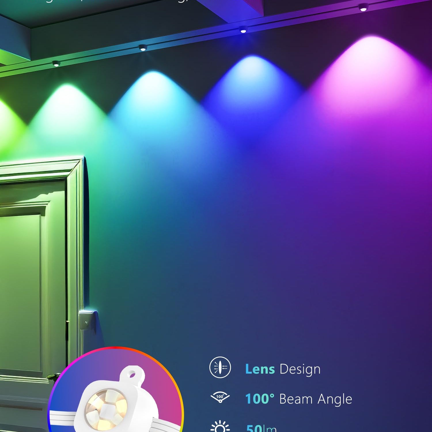 - Customizable Effects & Colors: With 16 million colors to choose from, you can customize the lighting from vibrant rainbow colors for Christmas, spooky hues for Halloween, pastel tones for Easter, and everything in between, our smart lights bring the perfect ambiance to every season and celebration. Enjoy dynamic effects like Flow, Chase, Jump, and more, with the ability to control two LEDs at the same time. The 100° beam angle ensures wider lighting coverage for enhanced brightness.