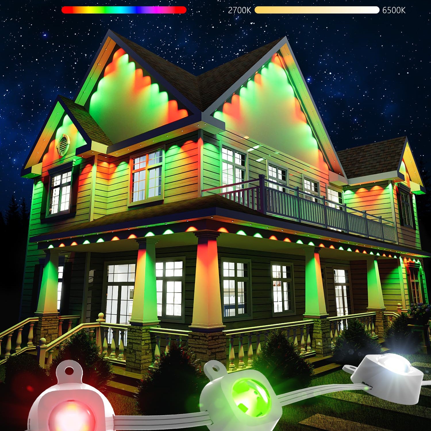 BrizLabs Permanent Outdoor Lights, 100ft 60 LED RGBCW Smart Christmas House Lights with 200+ Custom Scene-Color Effects, Waterproof Eave Light for Christmas, Halloween, Alexa, Google Assistant Enabled