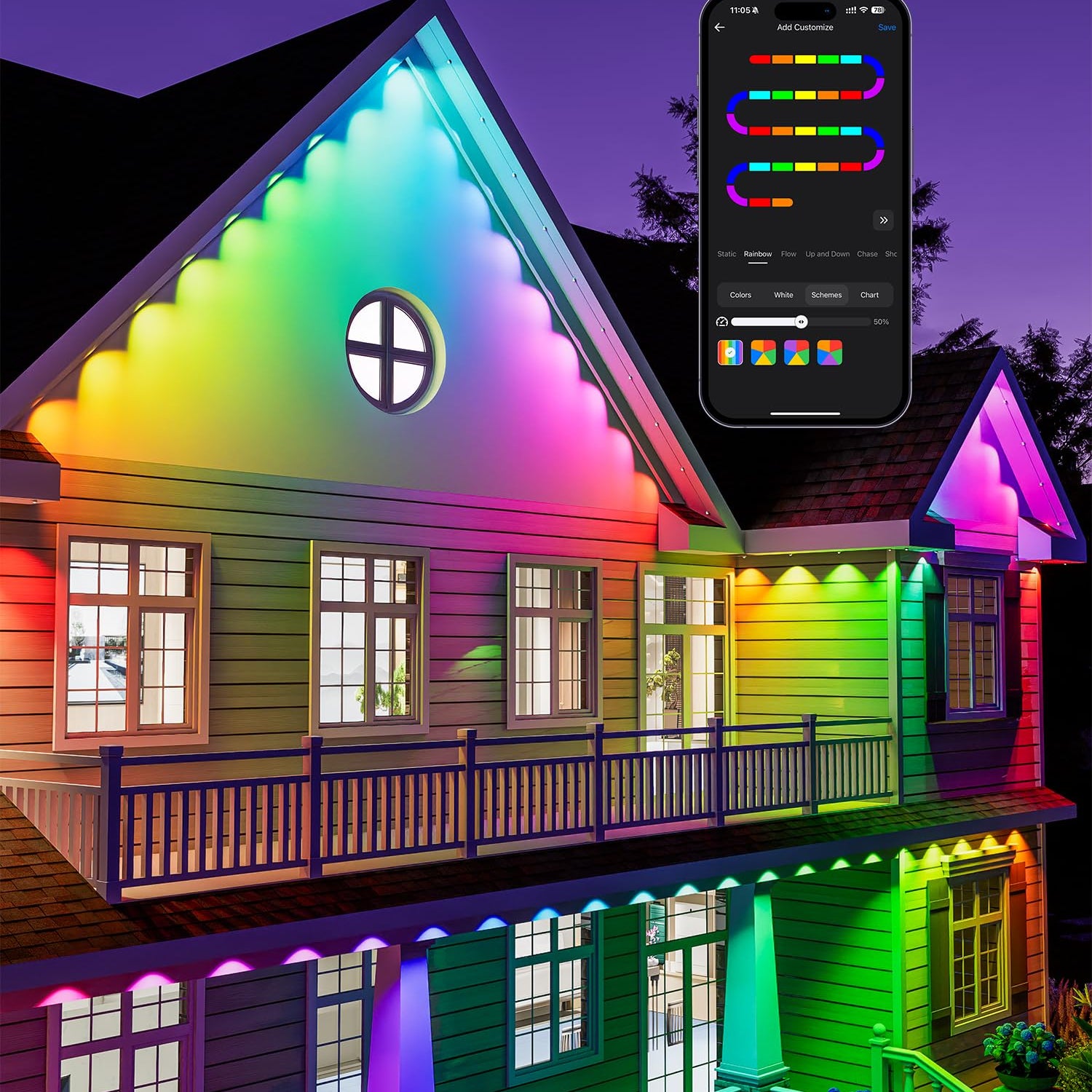 - Holiday & Year-Round Lighting: These permanent outdoor lights come with multiple preset scene modes and DIY customization options, perfect for decorating your house, garden, and outdoor spaces for holidays like Christmas and Halloween. Each LED can be independently adjusted, offering endless color and design possibilities.