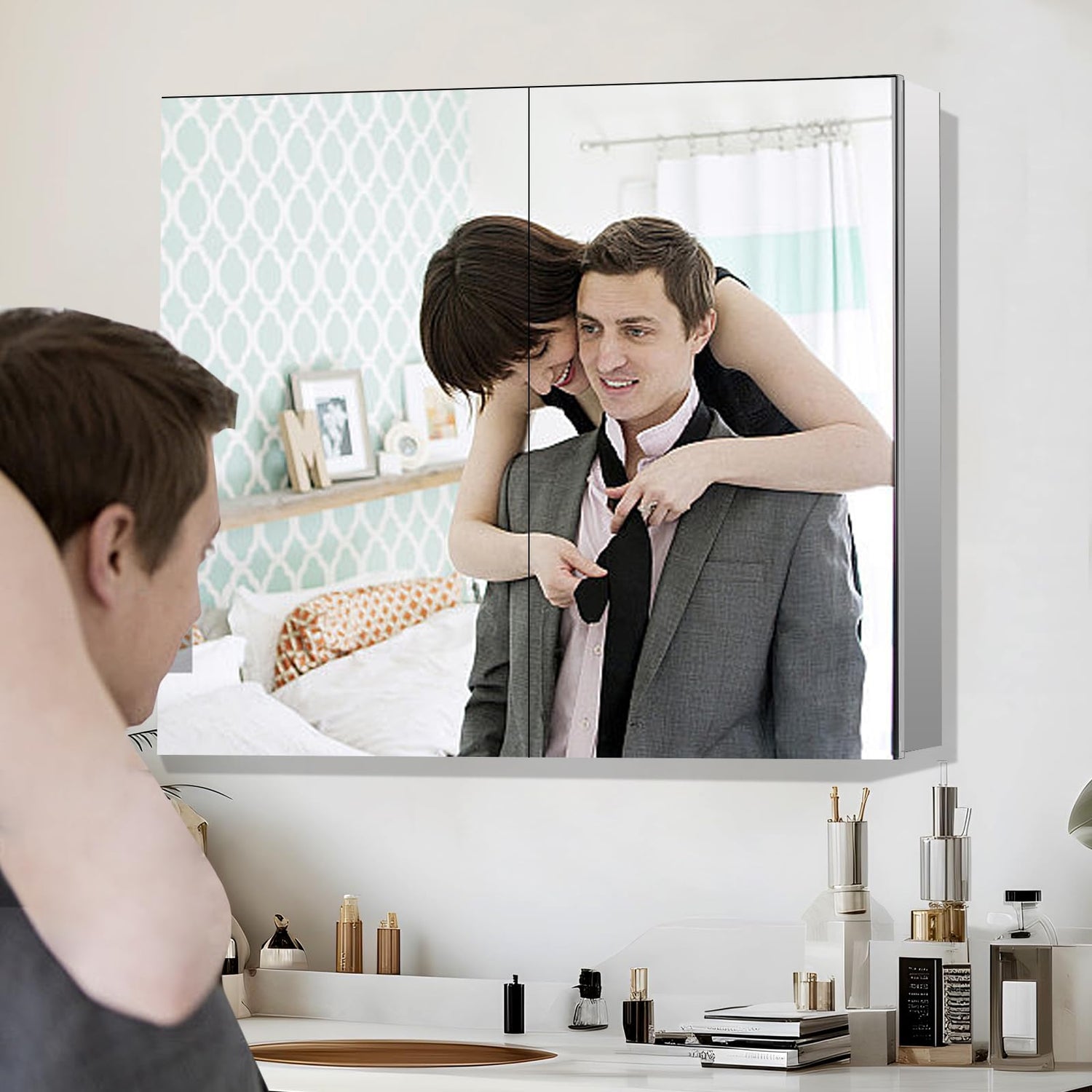 - Triple Premium Mirrors - This bathroom cabinet wall mount features extra-thick, premium glass that won’t warp – giving you a crystal-clear reflection every time.The front mirror seamlessly connects with the mirrors on both sides makes your bathroom look more spacious and modern.