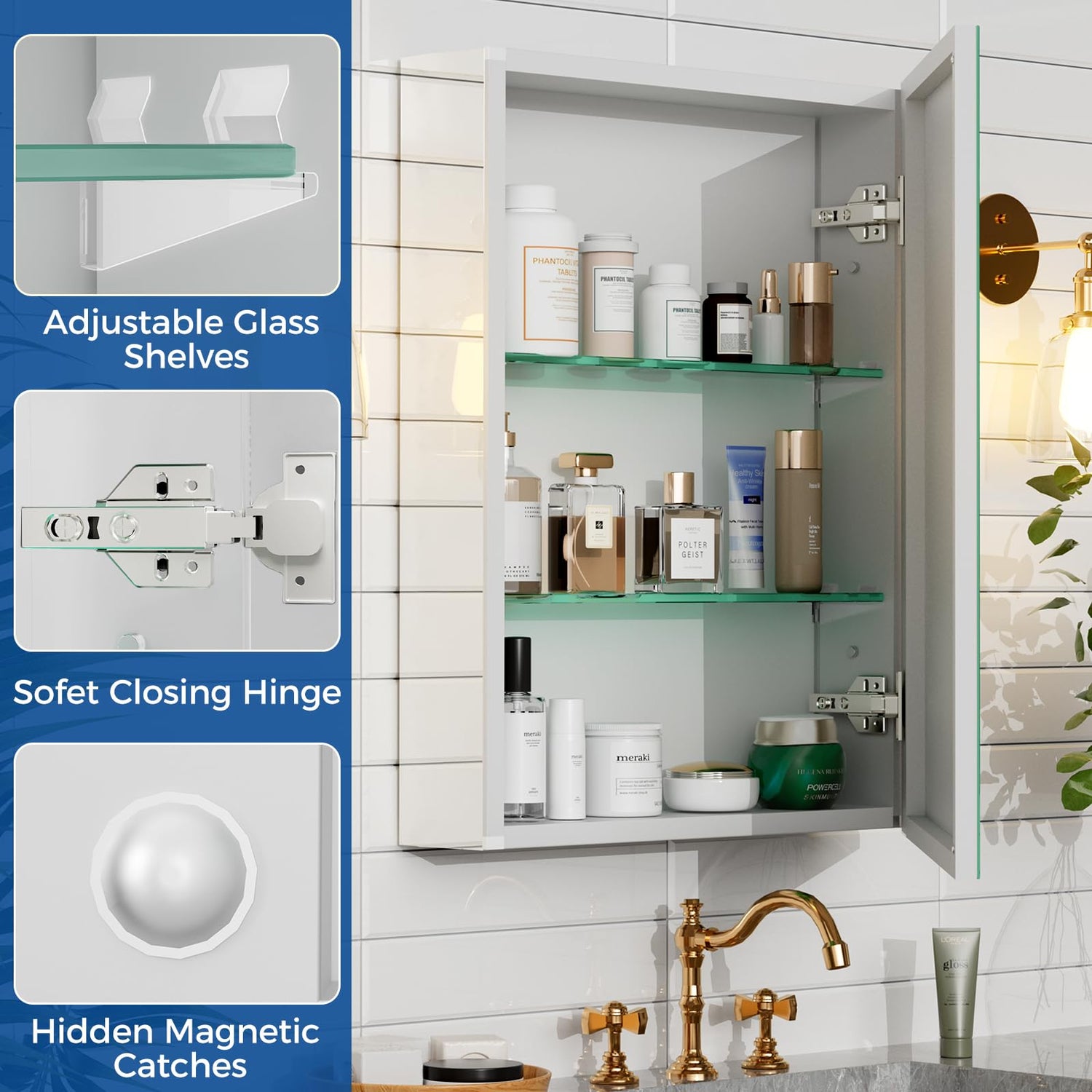 - Large Storage Capacity - The medicine cabinets for bathroom comes with 2 removable & adjustable tempered glass shelves that won’t bend or sag – even with heavy items! Easily move them up or down to fit your storage needs and create the perfect organized space.