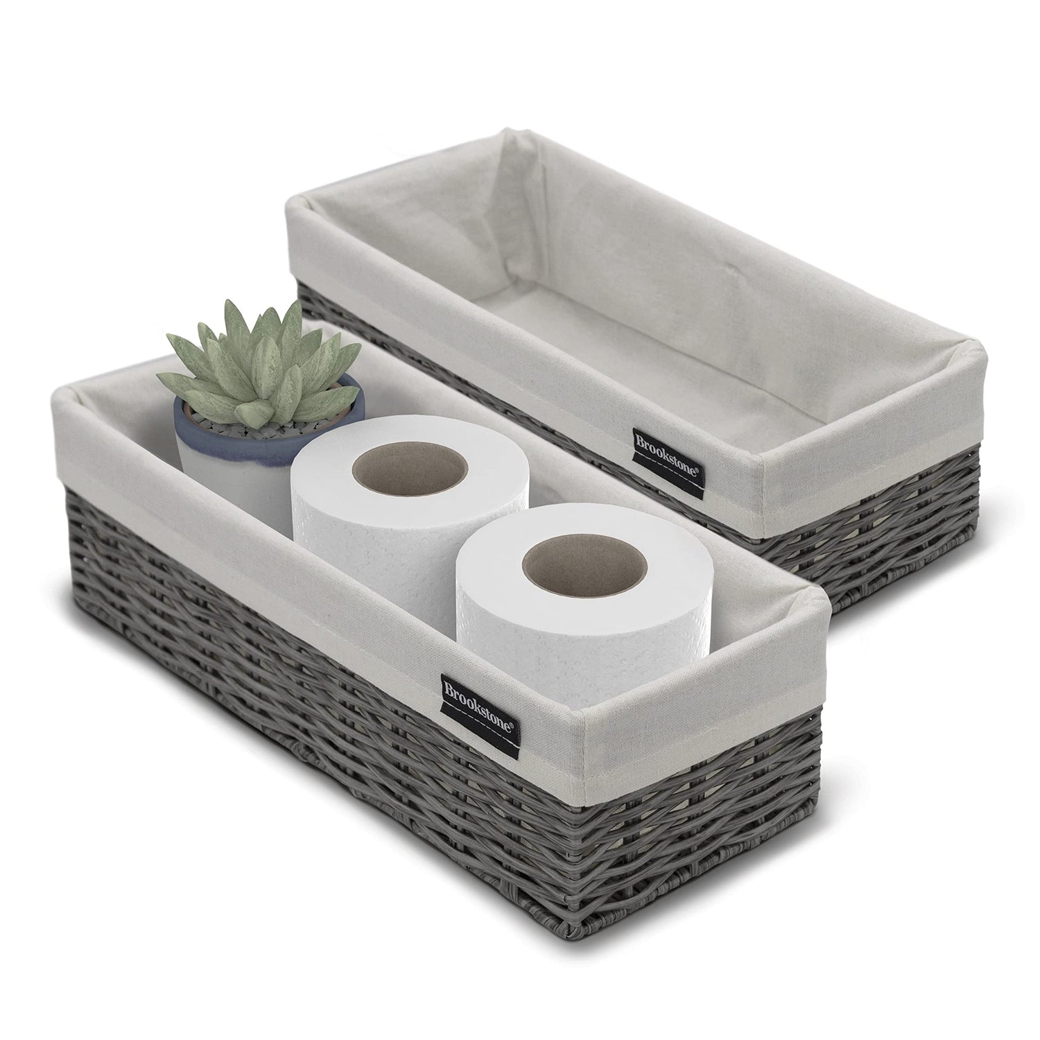 BROOKSTONE [2 PACK SET] Wicker Storage Basket, Boho Organization and Storage Container, Decorative Shelf Bin, Over the Toilet Paper Reserve, Suitable for Any Home Décor Style