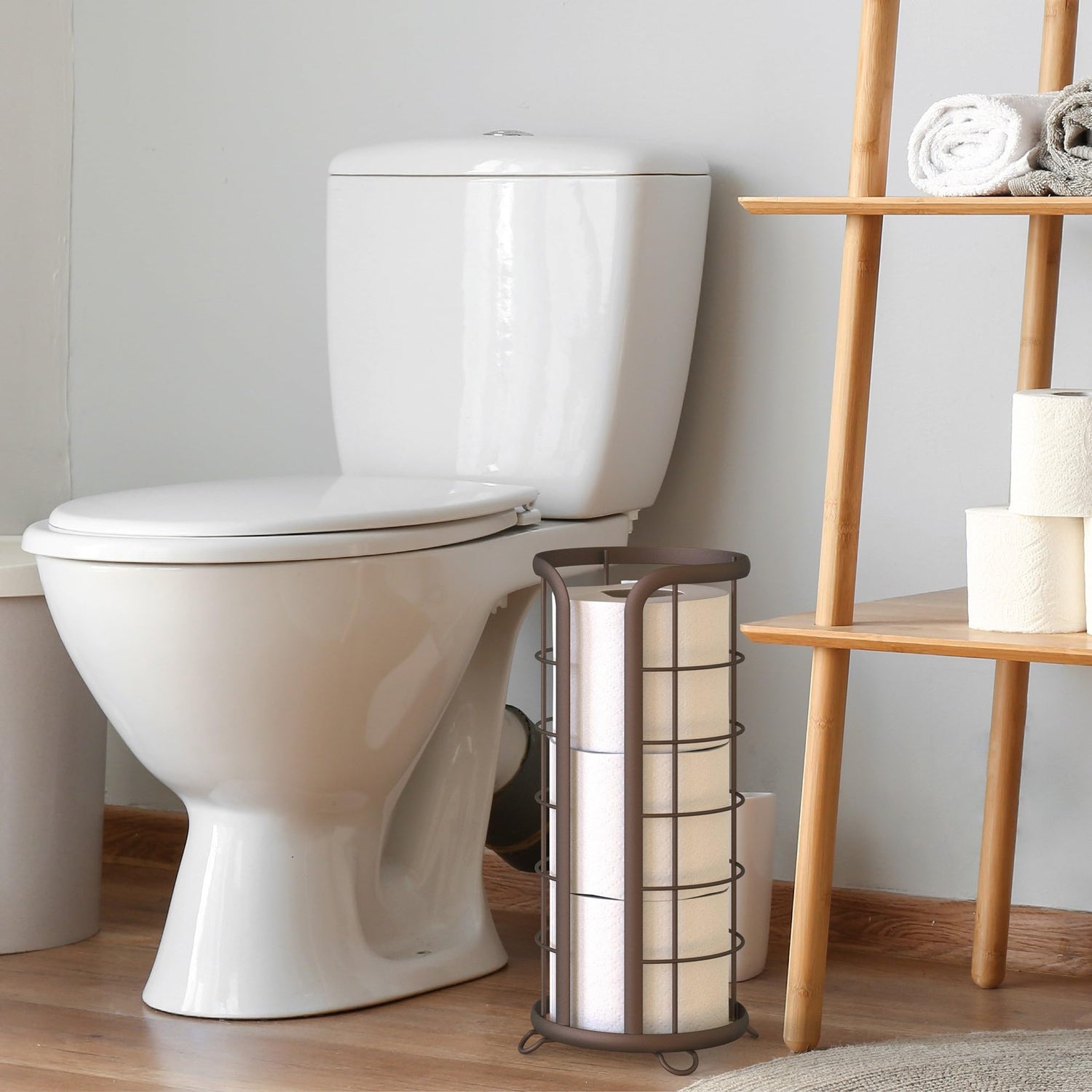- HOLDS MEGA ROLLS - This freestanding toilet paper holder is the perfect storage solution for your bathroom or lavatory. Raised feet are featured on this unit which keeps your toilet paper off the bathroom floor, ensuring it is clean and dry.