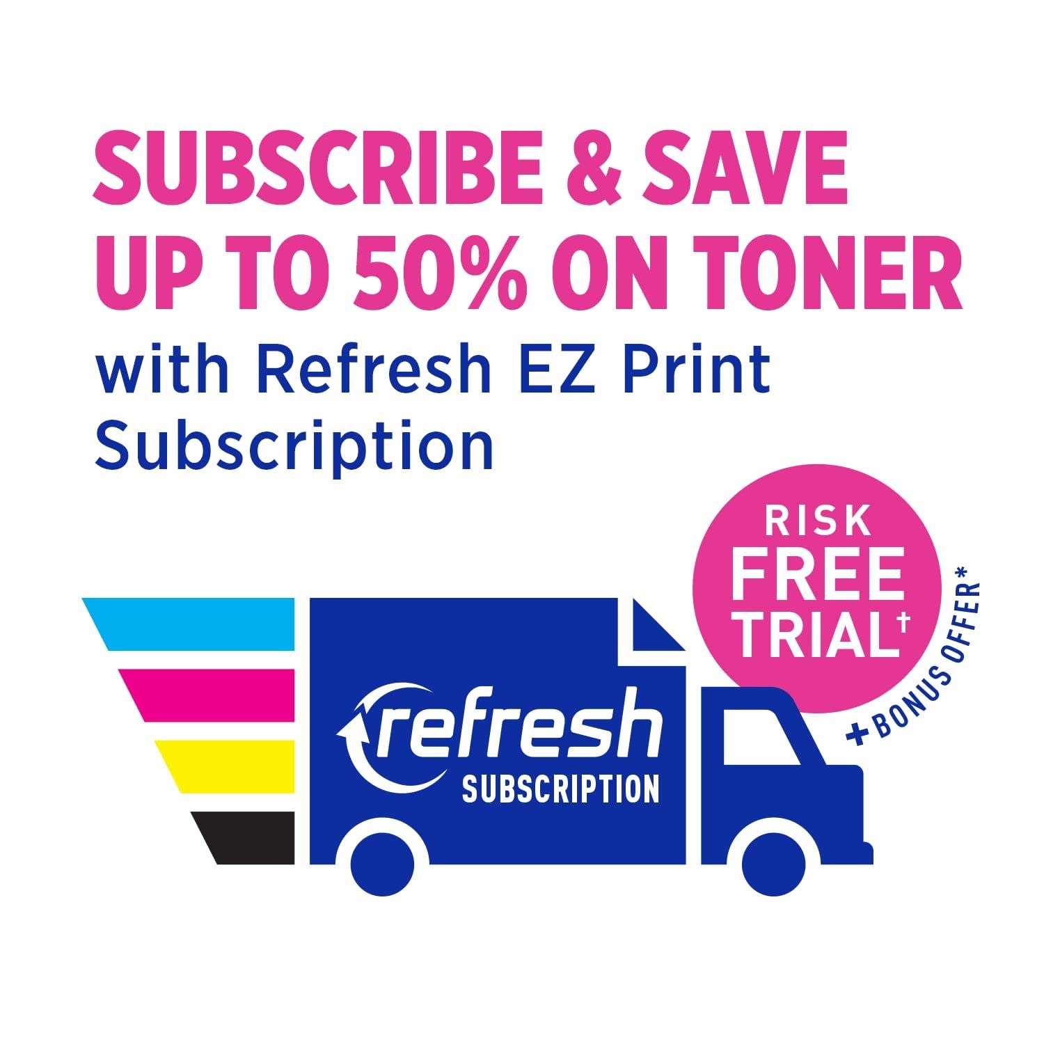 - Save up to 50% on toner with Refresh EZ Print Subscription Service(1). For one low monthly payment, get Brother Genuine Toner delivered right to your door, before you need it. Up to 4 months free trial included(2). Plus get 1,000 bonus pages when you enroll within 7 days of setup