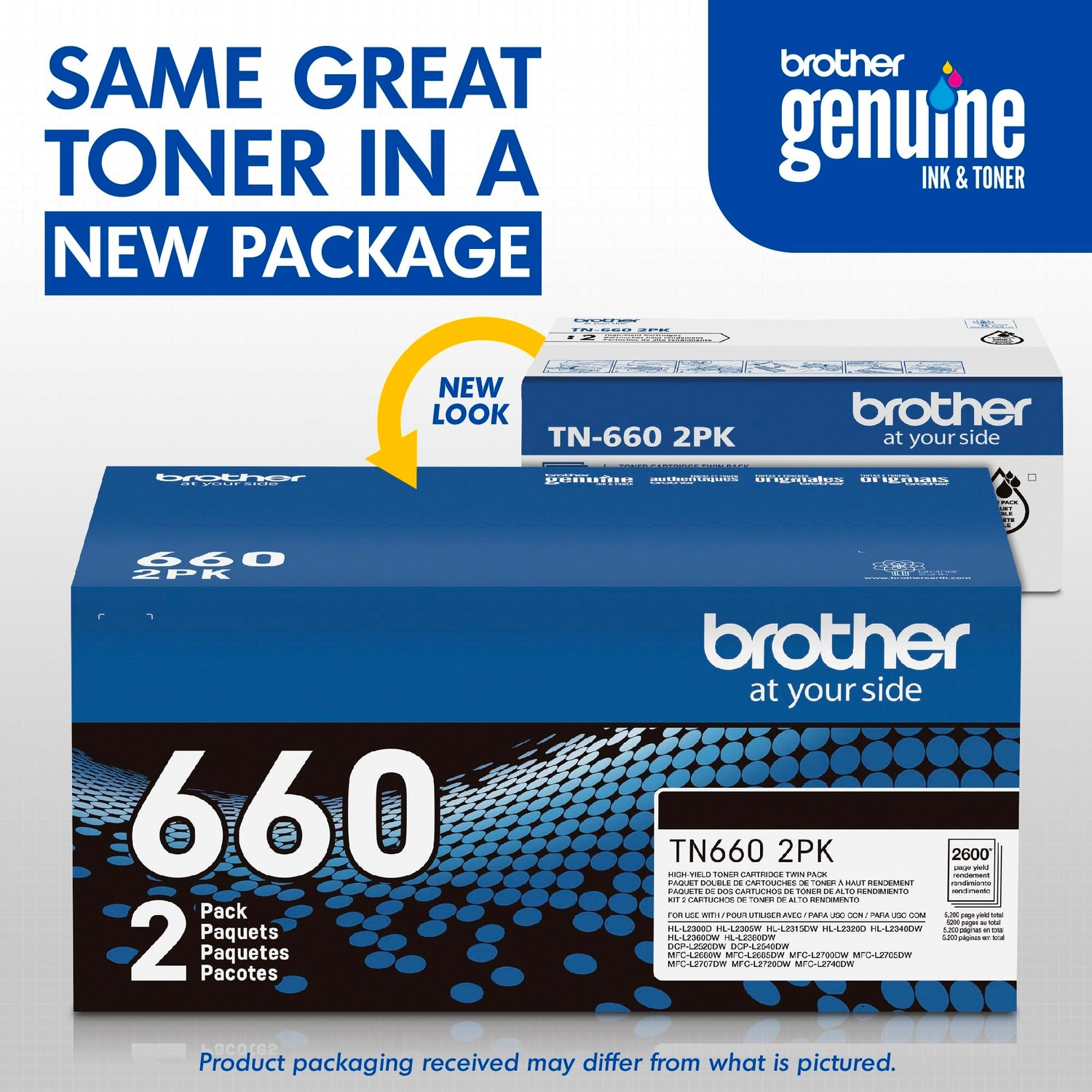 - Print twice as many pages: using Brother Genuine laser toner 2-packs delivers twice as many pages as single pack toner. (2) multi-pack laser toner helps minimize the number of toner orders you need to place.