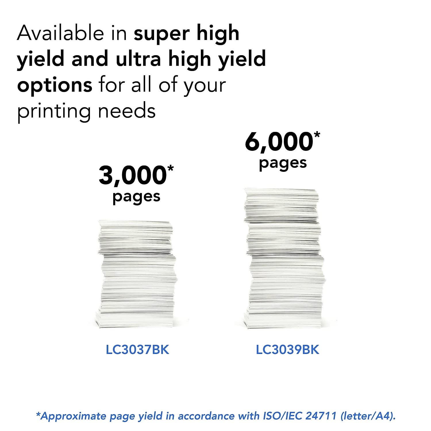 Brother Genuine ink cartridges come in a variety of page yields to help save money and deliver more pages. Choices for INKvestment Tank inkjet printer include Super High-yield and Ultra High-yield options. Always check compatibility of the ink cartridge with the Brother inkjet printer model.