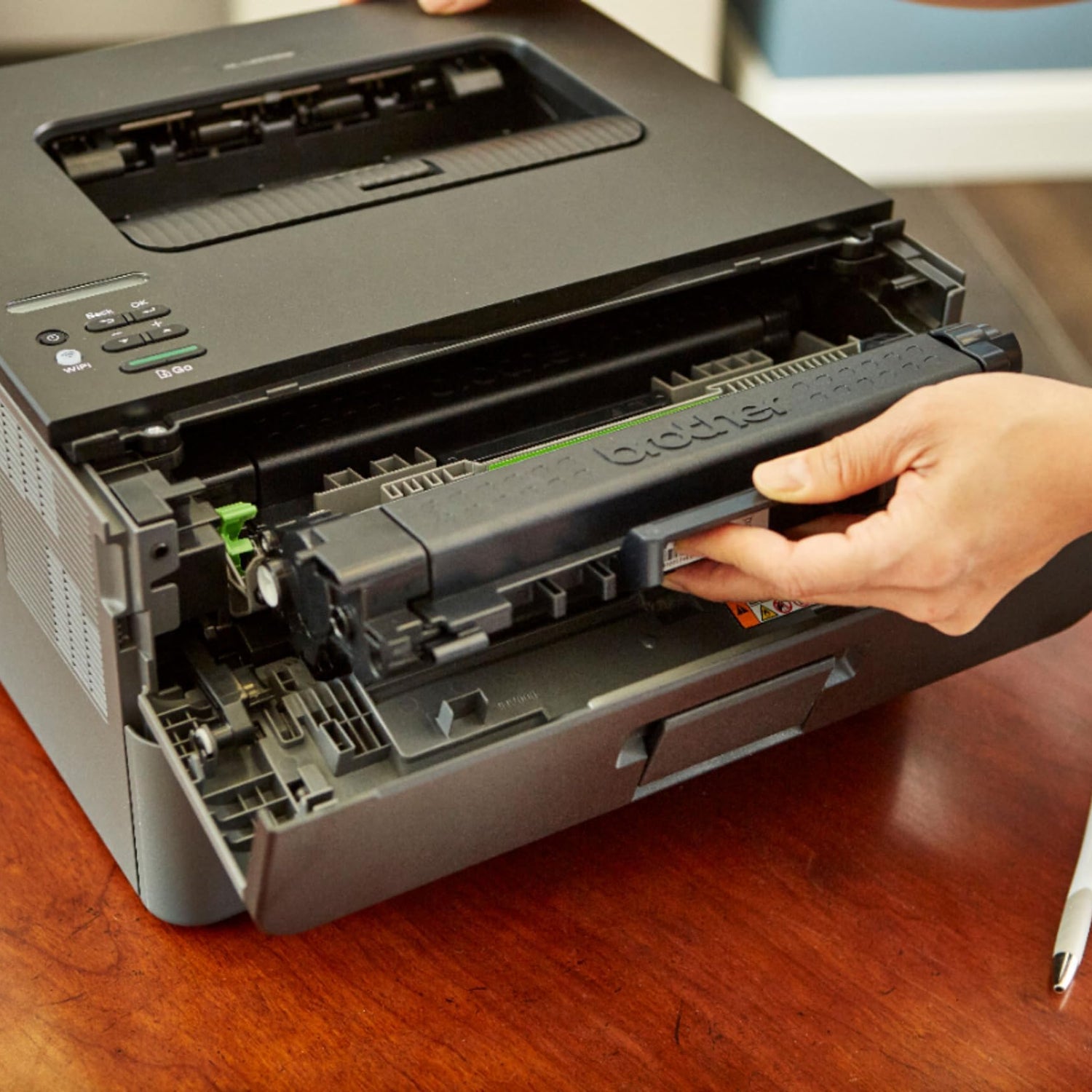- ▌ Single-Function: Print. ▌ The 250-sheet paper capacity helps improve efficiency with fewer refills and handles letter or legal sized paper. Brother Genuine super high-yield replacement toner delivers up to three times more prints and helps lower your printing costs.