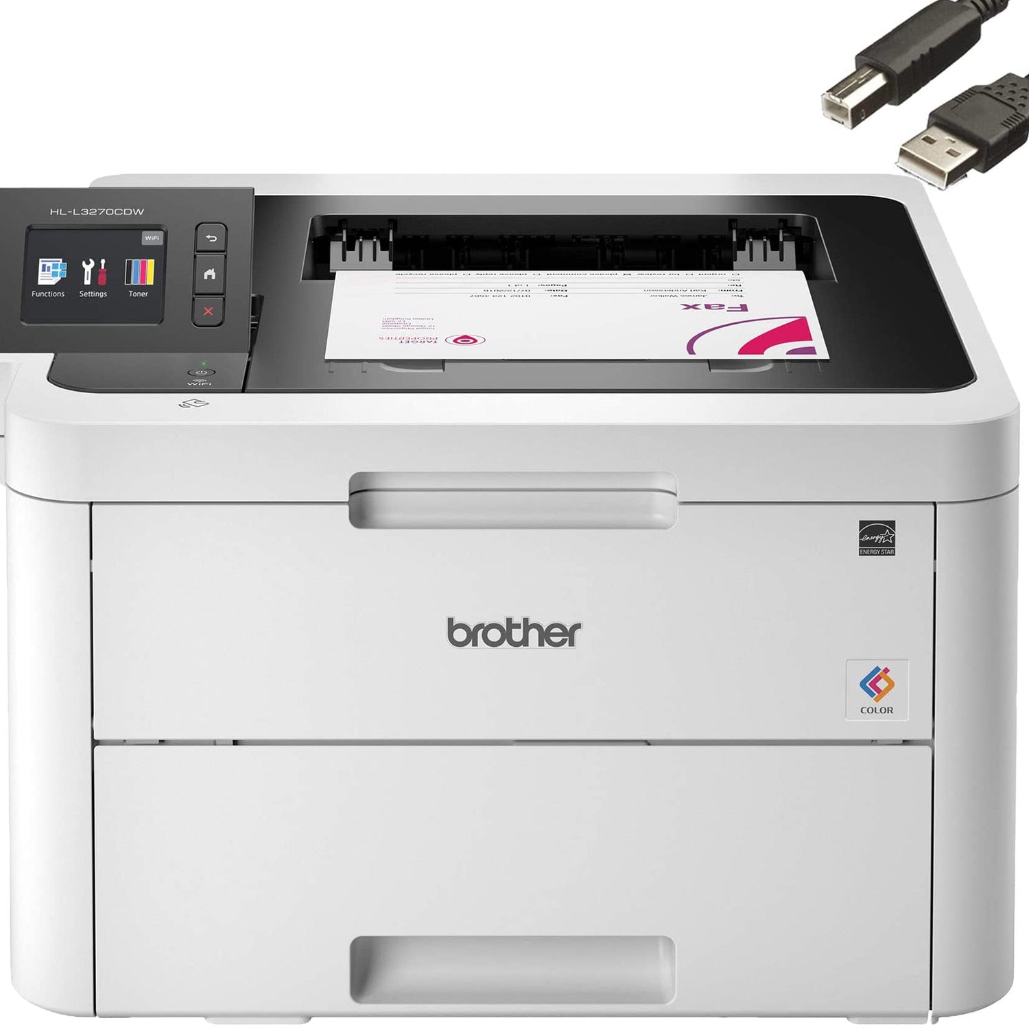 Brother HL-L3270CDW Compact Wireless Digital Color Printer with NFC, Built-in Wireless, Auto 2-Sided Printing, 25ppm, 600 x 2400 dpi, 250-sheet, Works with Alexa, Bundle with JAWFOAL Printer Cable