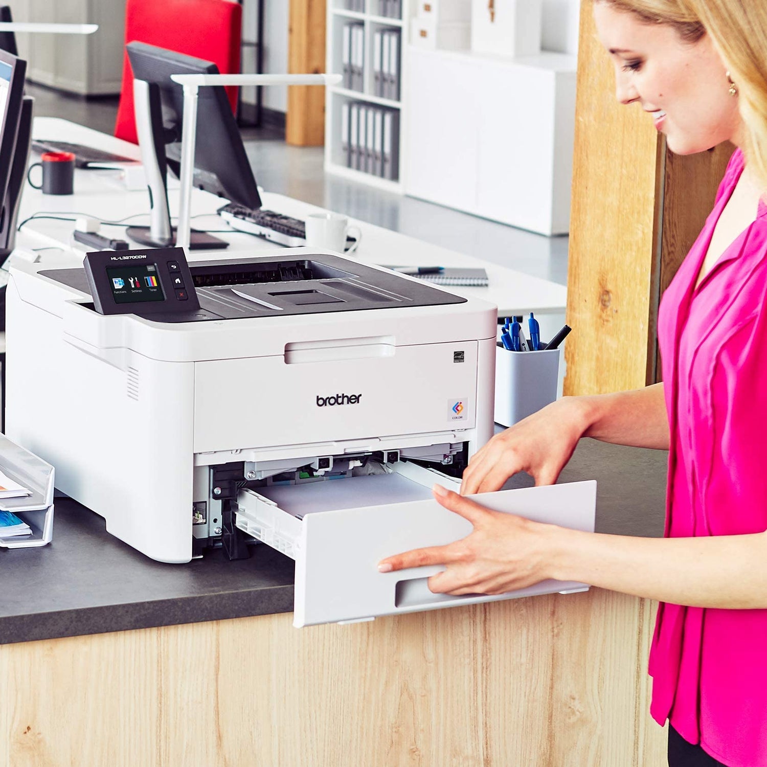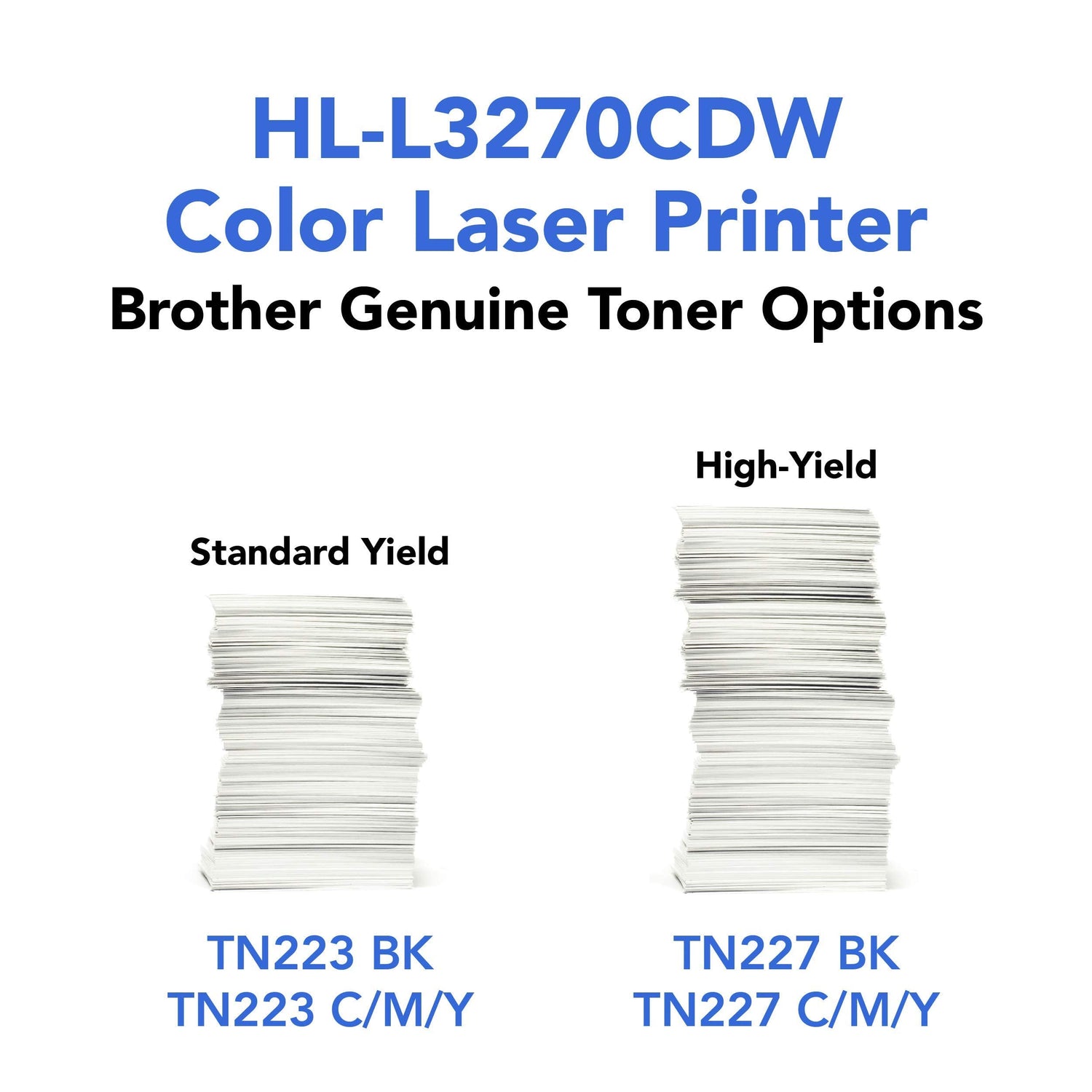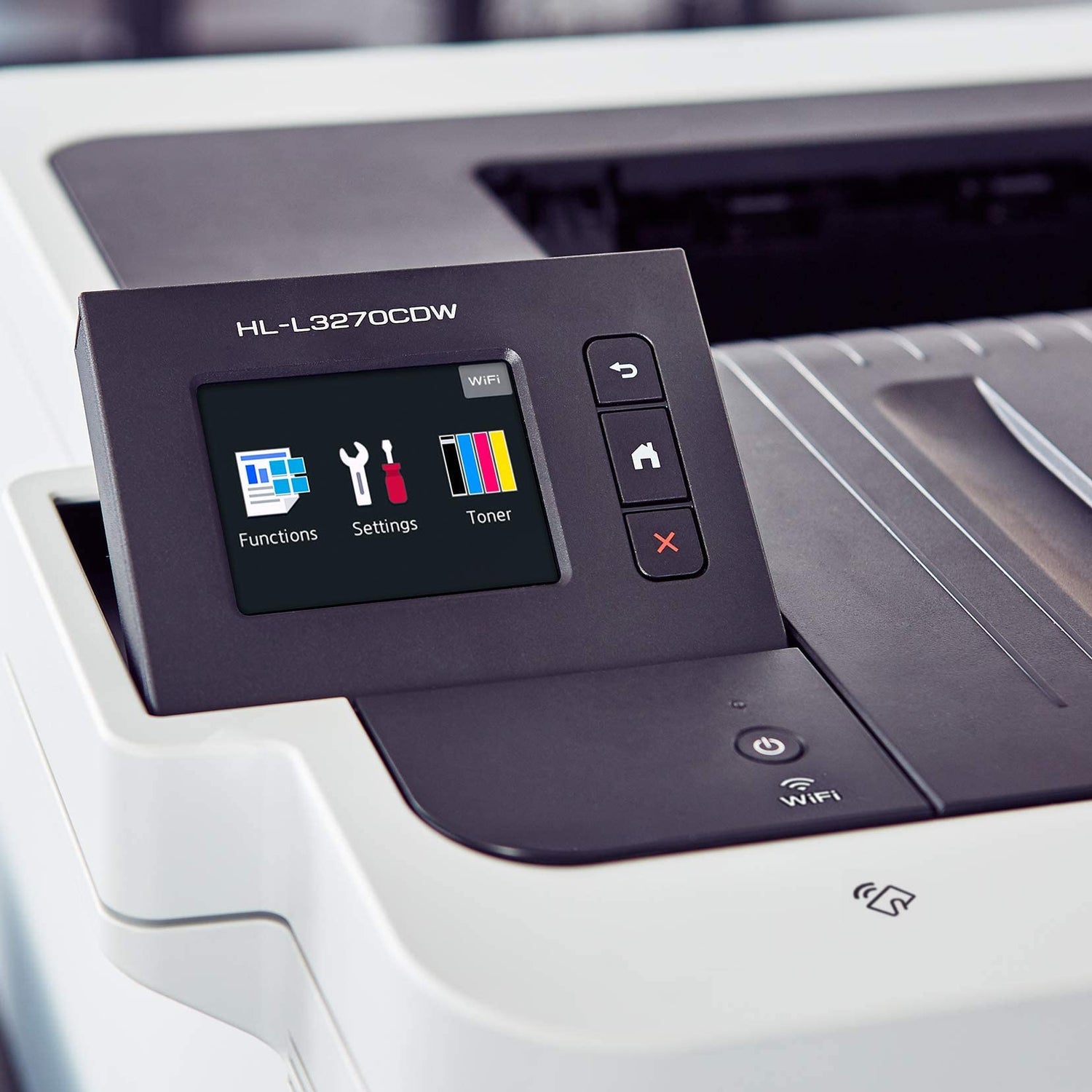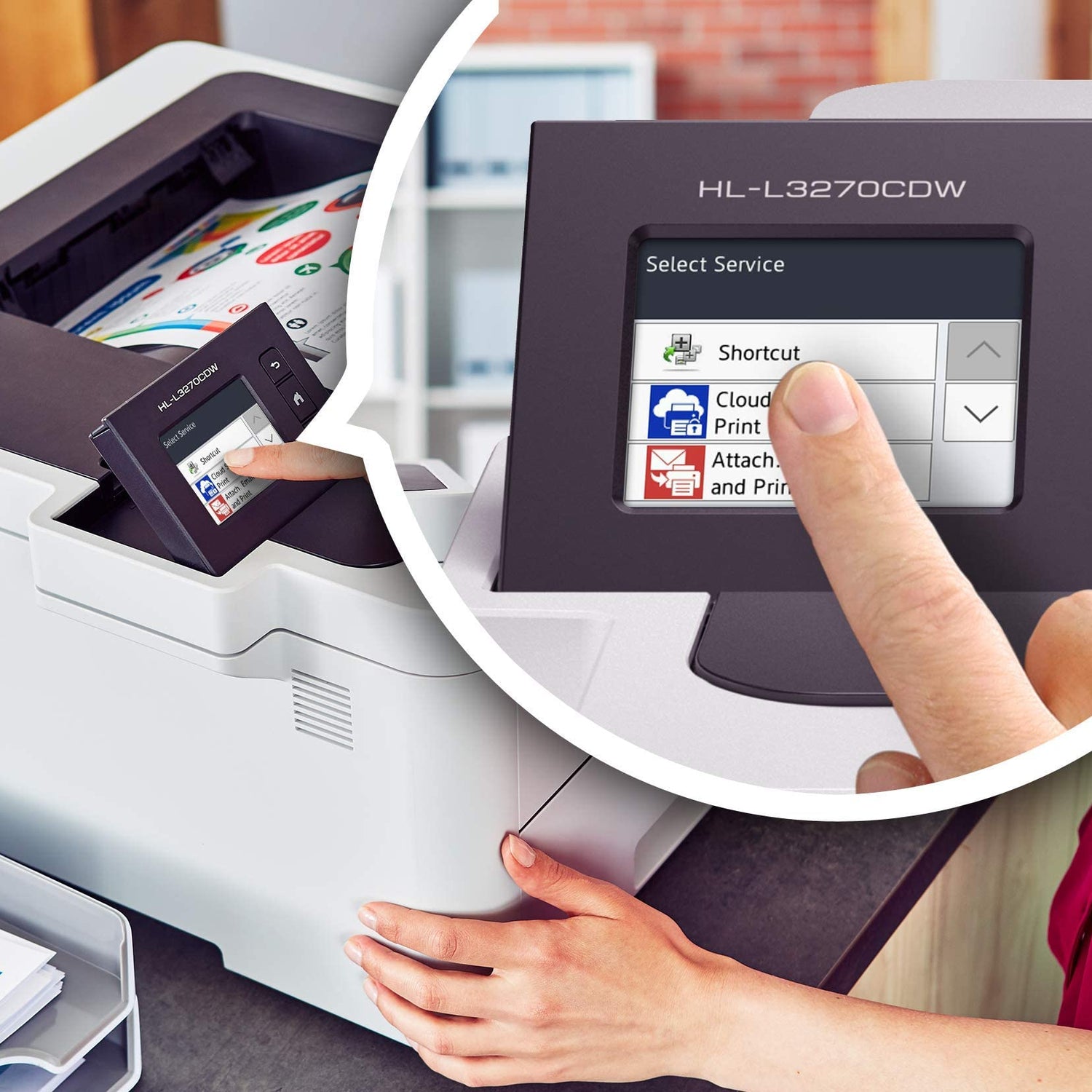 The reliable Brother HL-L3270CDW compact digital color printer is a great choice for the busy home or small office. Quick print speeds of up to 25 pages per minute* plus manual feed slot accommodates varied printing needs and can handle a variety of paper types and sizes including card stock, envelopes and more. Connect with versatile options including built-in wireless, Ethernet or USB interfaces and print wirelessly from mobile devices. The 250-sheet capacity adjustable paper tray helps improve efficiency with fewer refills and handles letter or legal sized paper. Automatic two-sided printing helps save on paper costs. Save time by creating custom shortcuts on the 2.7" color touchscreen which also enables you to print directly from popular cloud apps including Dropbox, Google Drive, Evernote, OneNote and more .