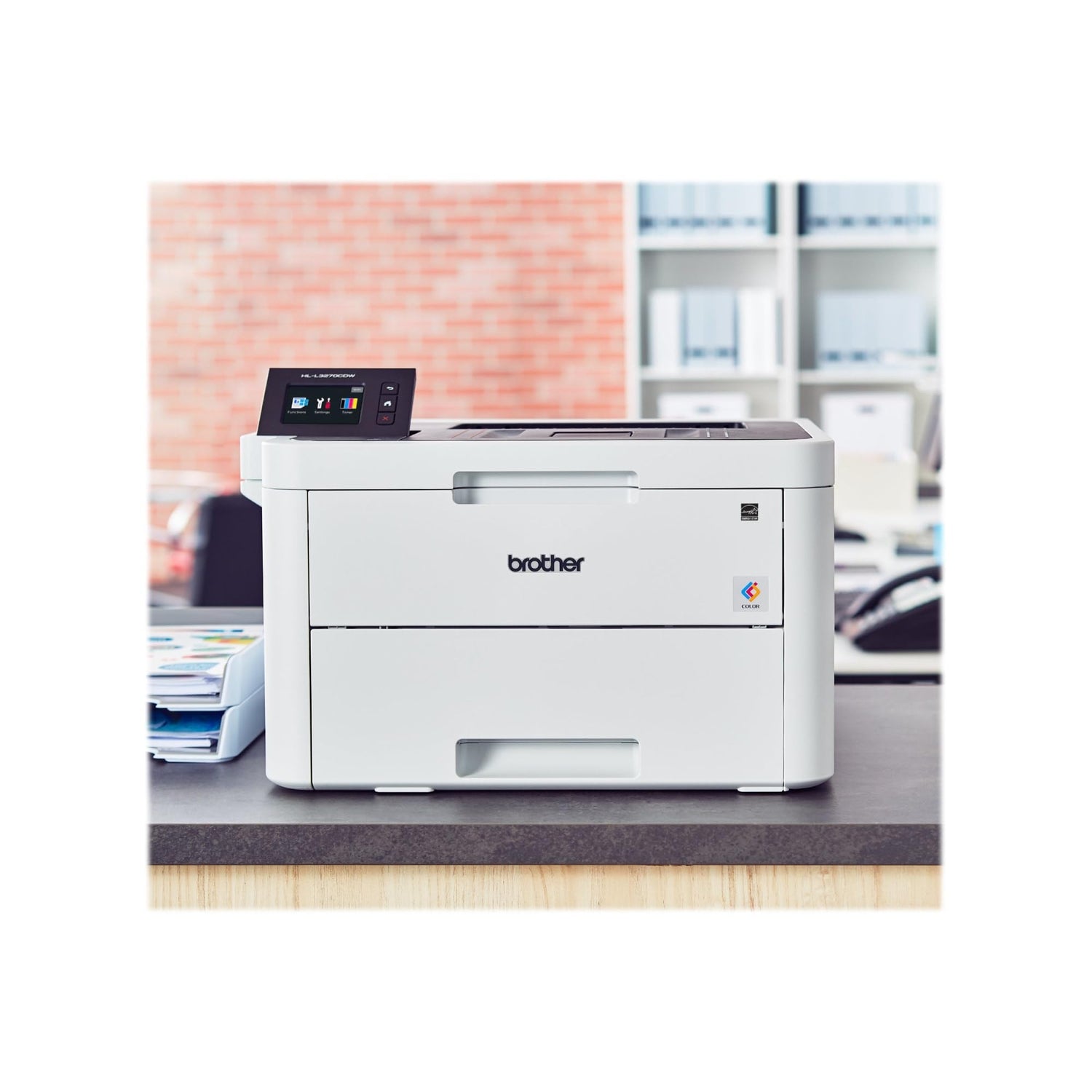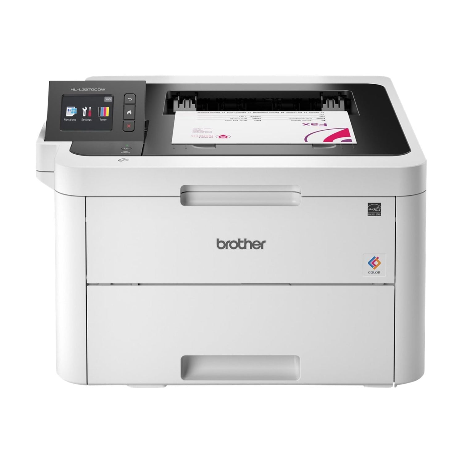 Details: The Brother HL-L3270CDW digital color printer with duplex printing is perfect for home or small offices looking for laser quality printing. Connect with built-in wireless, Ethernet or USB interfaces. Print wirelessly from mobile devices(1). Up to 250-sheet capacity tray and manual feed slot. Print rich, vivid color documents at up to 25ppm. Offers NFC “touch to connect" printing(1). FAST PRINTING TO KEEP YOU MOVING. The Brother HLL3270CDW Digital Color Printer lets you get things done with up to 25 pages per minute print speed. ENJOY EASY AND AFFORDABLE COLOR PRINTING. Affordably print professional-quality, rich, vivid color documents with laser printer quality. VERSATILE PAPER HANDLING HELPS INCREASE PRODUCTIVITY. Help minimize refills with the 250-sheet paper tray, adjusting for letter or legal paper. The manual feed slot handles a variety of paper types and sizes, including card stock, envelopes, etc. PRINT AND CONNECT YOUR WAY. The HLL3270CDW offers mobile device wireless printing(1) and built-in wireless, Ethernet, Wi-Fi Direct and USB interfaces. Print-from popular cloud apps directly from the 2.7" color touchscreen(2). FOR USE WITH BROTHER GENUINE TONER. TN223BK, TN223C, TN223M, TN223Y, TN227BK, TN227C, TN227M, TN227Y. Disclaimers: (1) Requires connection to a wireless network. (2) Requires internet connection and an account with desired service. Energy efficient - designed to use less energy than alternative products, potentially helping you save money and reduce your carbon footprint.