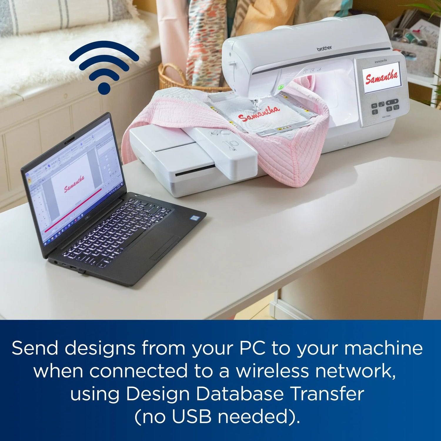 - Wireless capability: The durable NQ1700E has wireless ability, so you can send designs from your PC to your machine when connected to a wireless network, using Design Database Transfer (no USB needed).