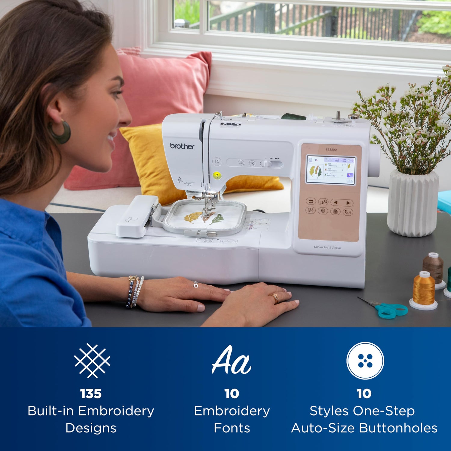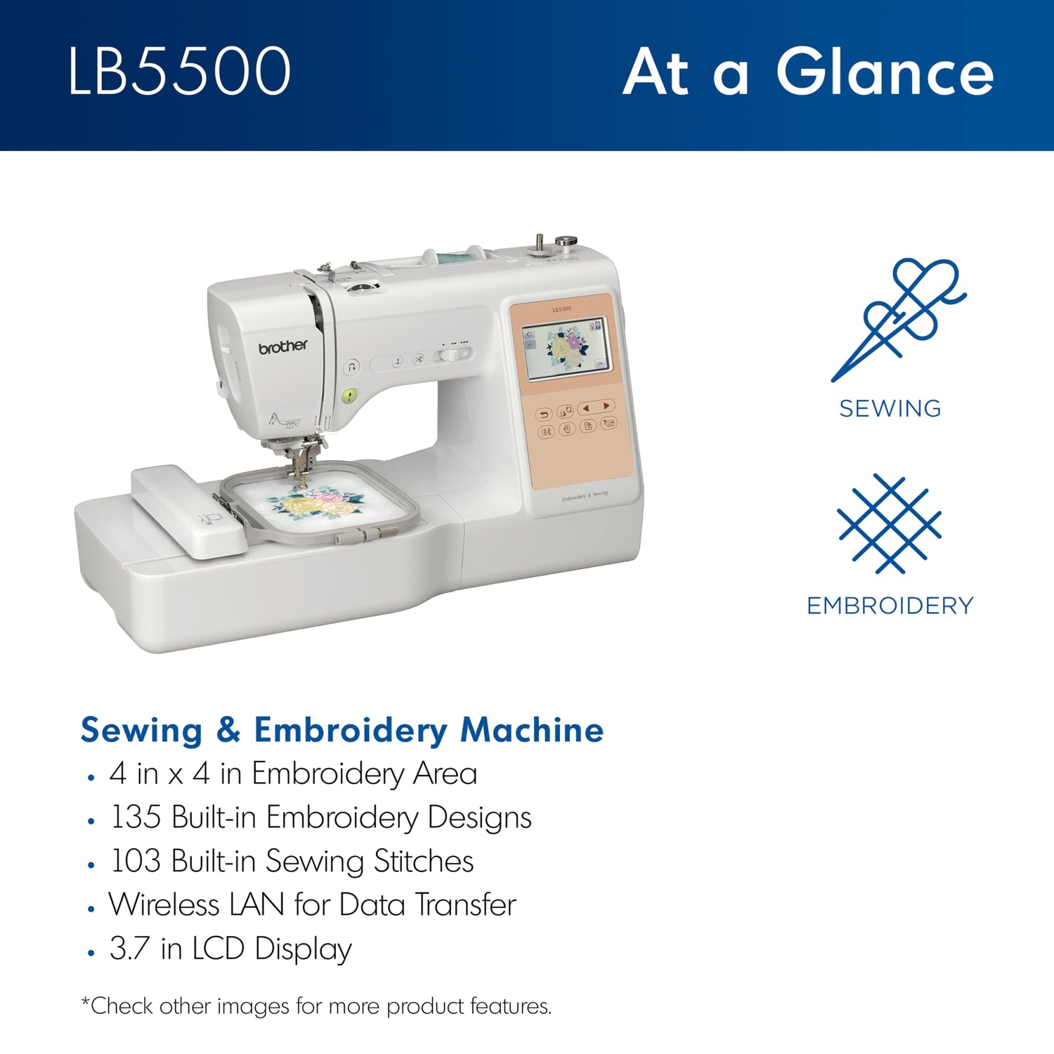 - Sewing and Embroidery in One: The LB5500 is the ideal machine to start your sewing and embroidery journey. With a stylish cosmetic, a host of built-in designs, fonts, patterns, and state-of-the-art features, taking that first sewing and embroidery step just got easier with the LB5500.