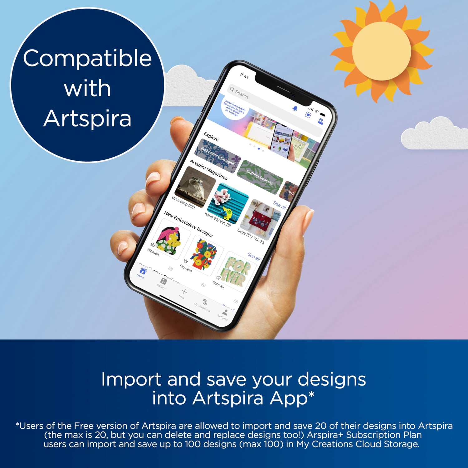 - Artspira App: Draw your next project on the Artspira App. With an array of patterns and cut data you can download, plus the ability to make embroidery patterns by drawing on your mobile device and then transferring them to your LB5500 wirelessly, the Artspira App will have you creating on the go.
