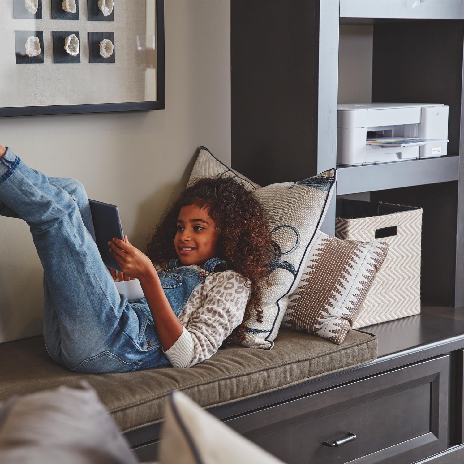 Details: The newly designed Brother MFC-J1215W INKvestment Tank Wireless Multi-Function Color Inkjet Printer is sleek, compact and very affordable. This revolutionary color inkjet printer features reengineered high capacity ink cartridges that provide up to 1-year of uninterrupted printing using only the cartridges included in-box. Print, copy and scan features can be accessed from your mobile device through the Brother Mobile Connect App. Brother Mobile Connect(2) has a user-friendly interface that gives you the freedom to print from virtually anywhere and always have access to the status of your printer’s ink usage. Brother Intelligent Page Gauge is a feature that can be accessed through the App,(2) providing a visual, numerical way to know the amount of ink you’ve used and the amount of ink you have remaining. This wireless printer has multiple flexible connection options, including a built-in wireless interface for sharing with multiple users on your network, Wi-Fi Direct® or connect locally to a single computer via a USB interface. The printer is easy-to-use, features a clean, modern design, offers quick setup and convenient optional printing via AirPrint® and/or Email Print. Works with Alexa; add voice control by combining with an Alexa device. When you need a reliable color inkjet printer at an affordable price to keep pace with your home or home office document needs, Brother INKvestment Tank MFC-J1215W is the printer for you. Includes a 2-year limited warranty with free online, live chat or phone support for the life of your printer. Disclaimers (1) Based on average monthly print volumes of approximately 80 pages at 60% black pages/40% color pages in accordance with ISO/IEC 24711 using 4 cartridges provided in-box. For additional page yield information, see manufacturer’s site. (2) Requires connection to a wireless network. Brother Mobile Connect free app download is not available in all countries. AirPrint is a registered trademark of Apple Inc. Wi-Fi Direct is a registered trademark of Wi-Fi Alliance®. Images are for illustrative purposes only. Specifications subject to change.