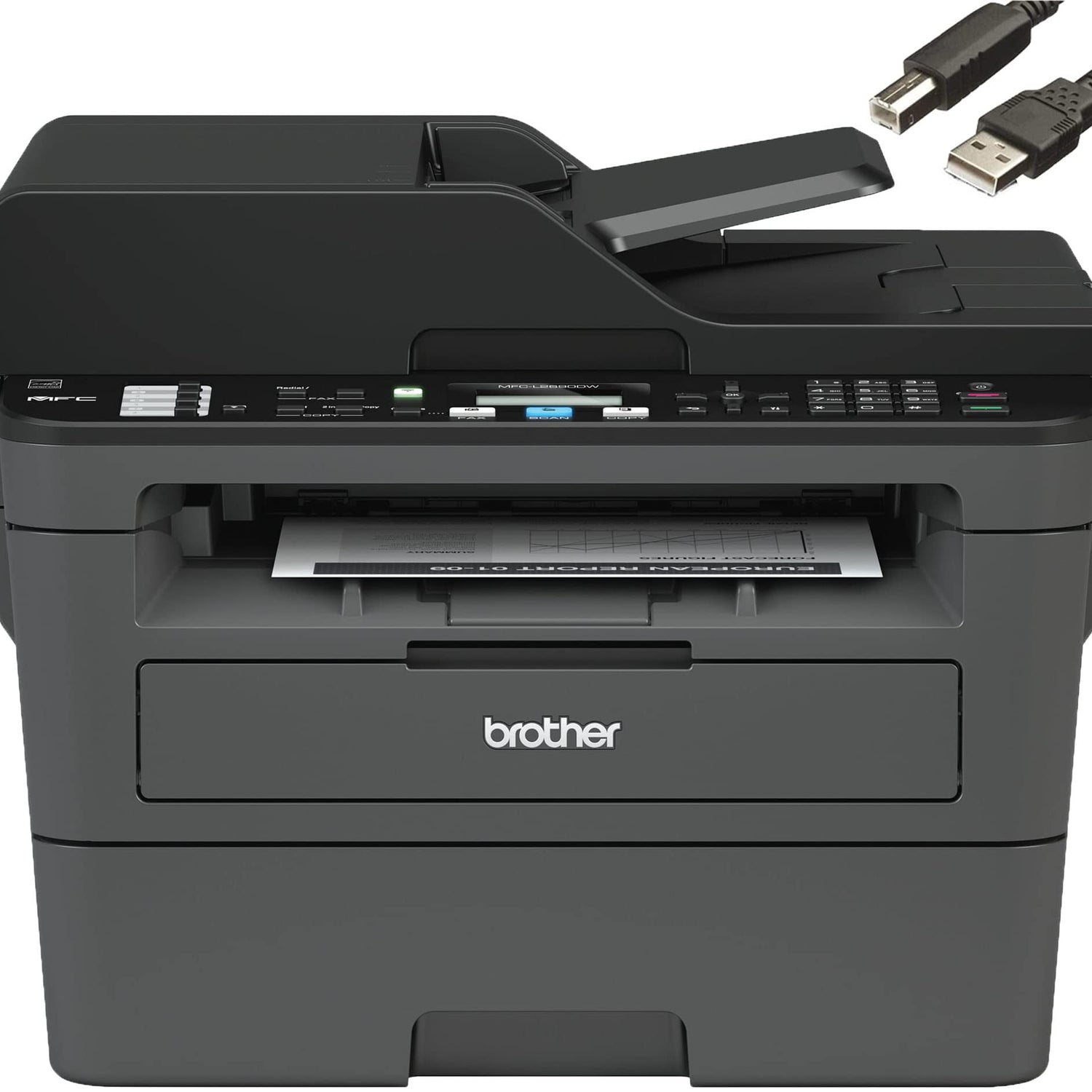 Brother MFC-L2690DW Monochrome Laser All-in-One Printer, Print Scan Copy Fax, Auto 2-Sided Printing, Wireless Connectivity, 26ppm, 250-sheet, Compatible with Alexa, Bundle with JAWFOAL Printer Cable