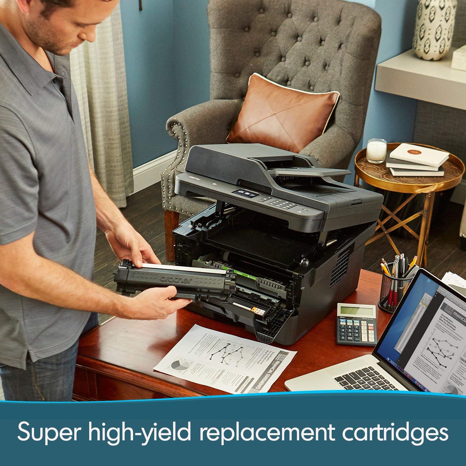 - In the Box: Brother MFC-L2750DW, cartridge, DR730 drum, quick setup guide and basic user's guide, installation CD-ROM, AC power cord, telephone line cord.
